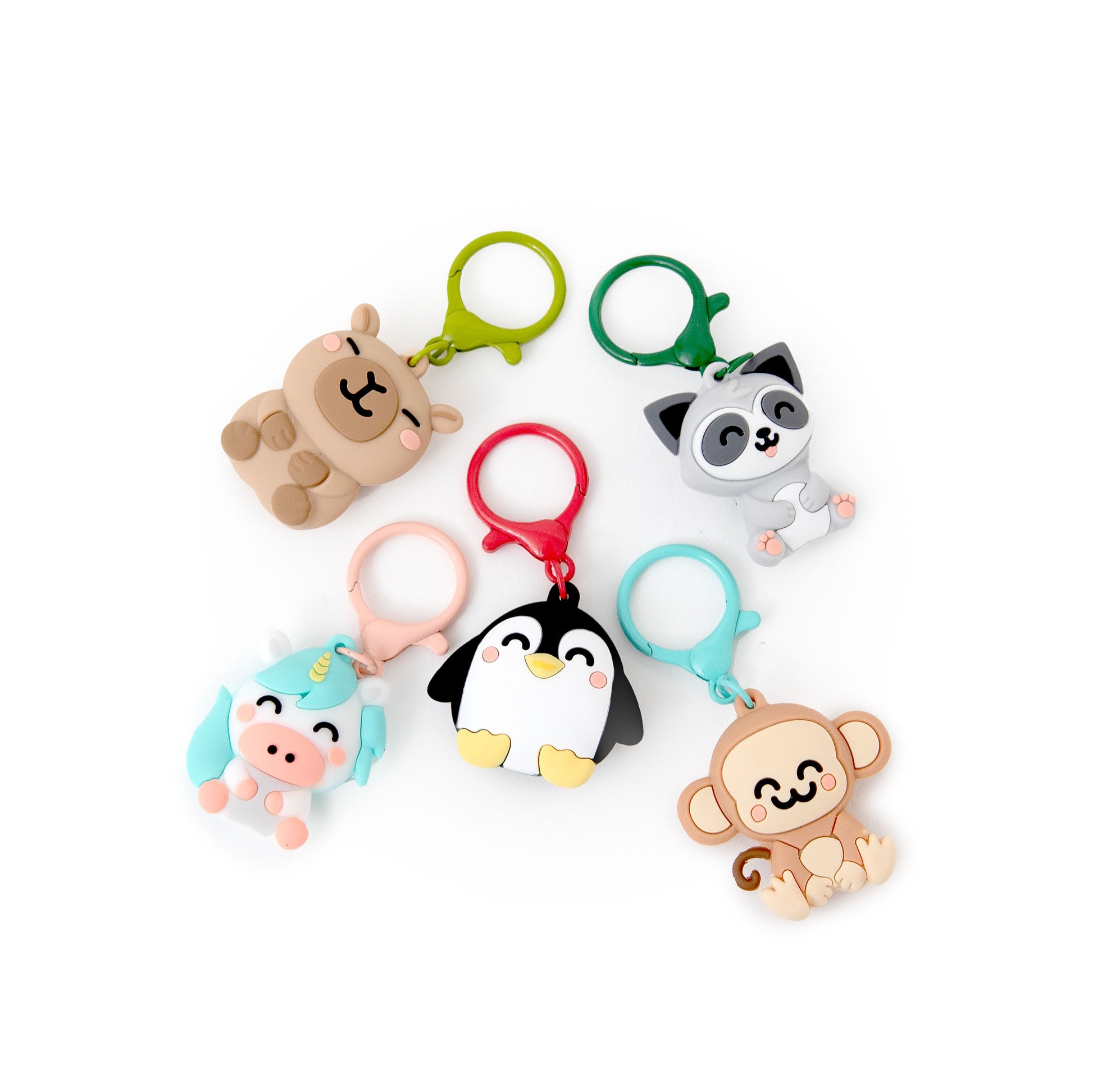 · 5 llaveros de caucho (mono, pingüino, mapache, capibara y unicornio)