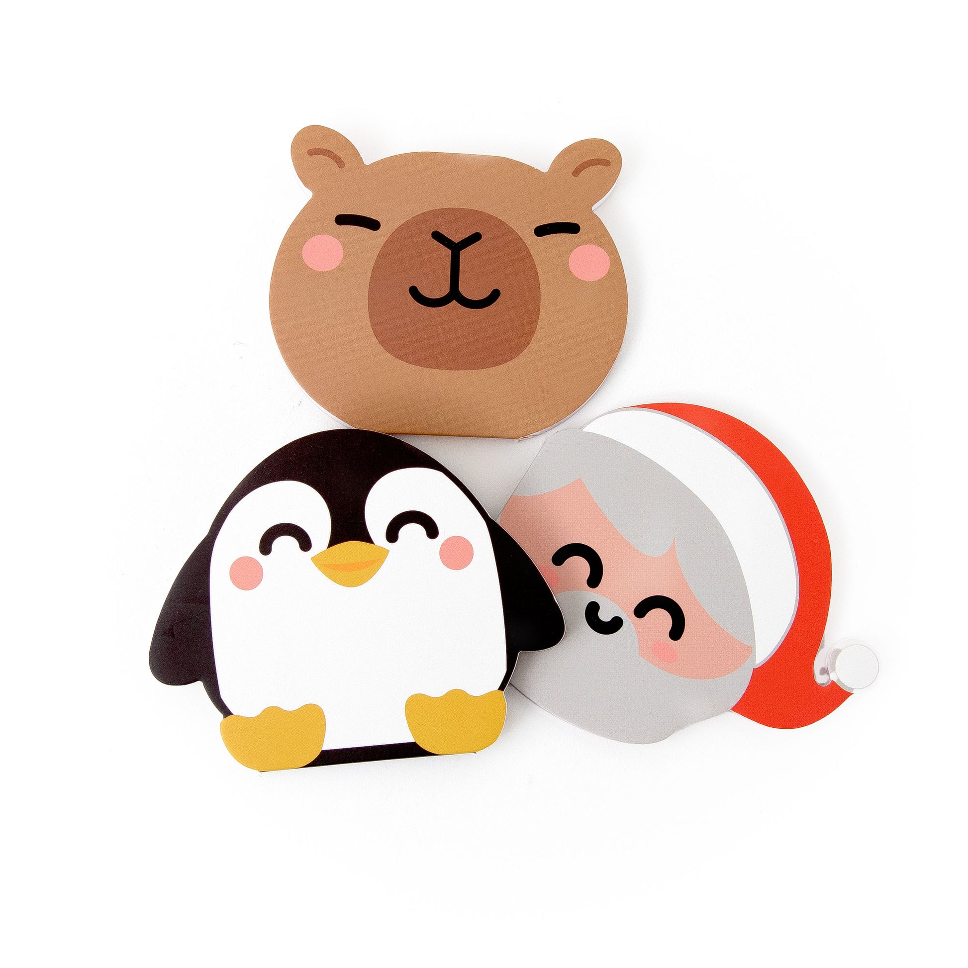 · 3 minilibretas con formitas (Papá Noel, capibara y pingüino)