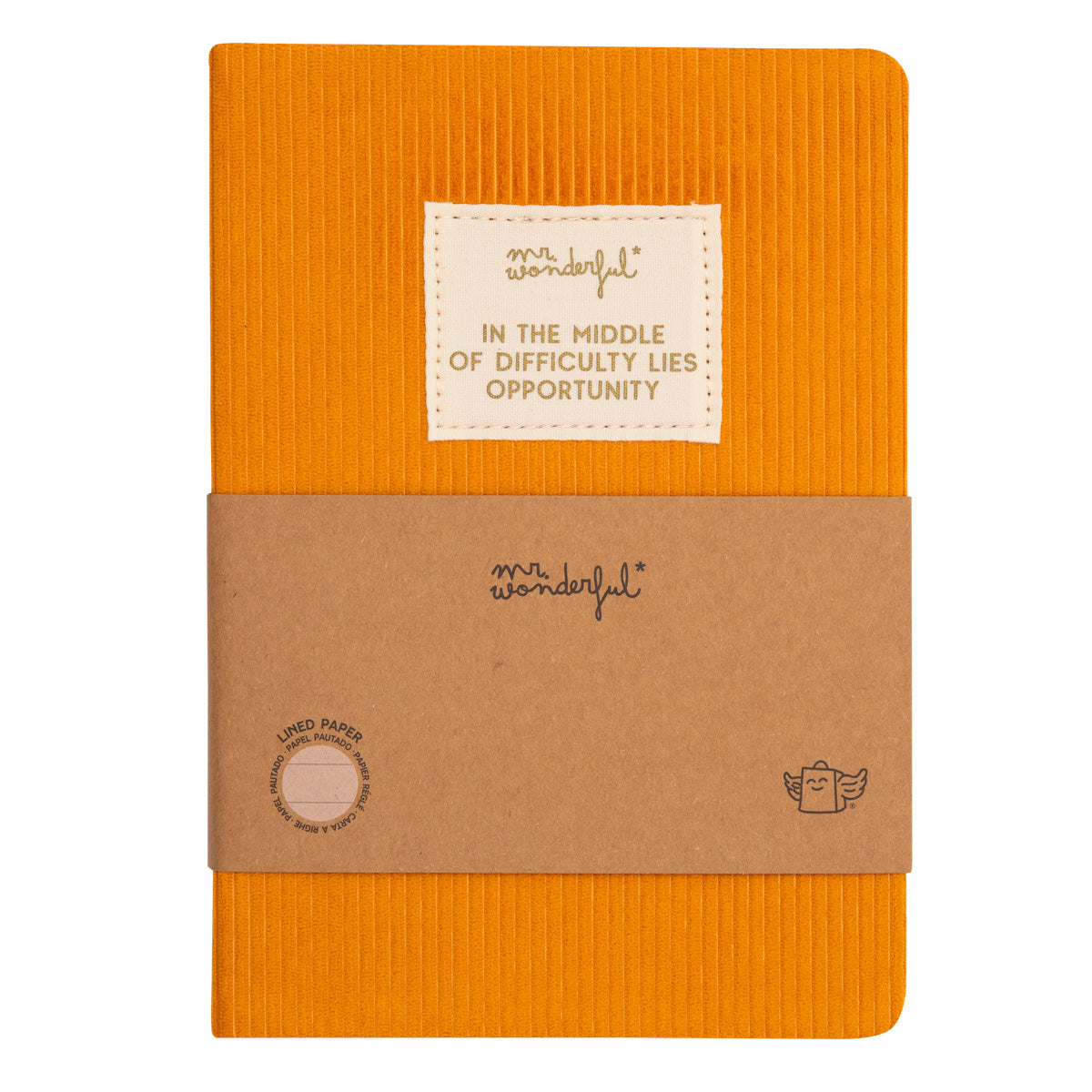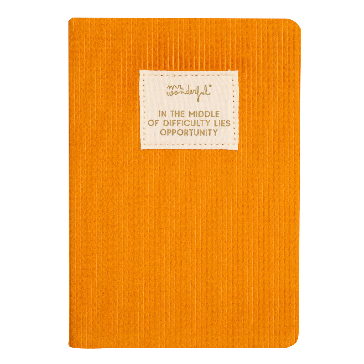 A5 notebook corduroy mustard - In the middle of difficulty lies opportunity.