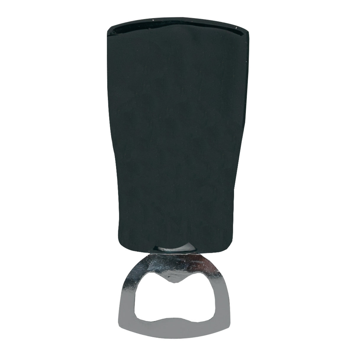 Abridor de botellas de chapa con mensaje dirigido a padres. Su parte trasera es magnética, por lo que resulta ideal para colgarlo en la puerta de la nevera. La parte funcional es de acero inoxidable y la parte decorativa, con el diseño y mensaje, es de caucho.