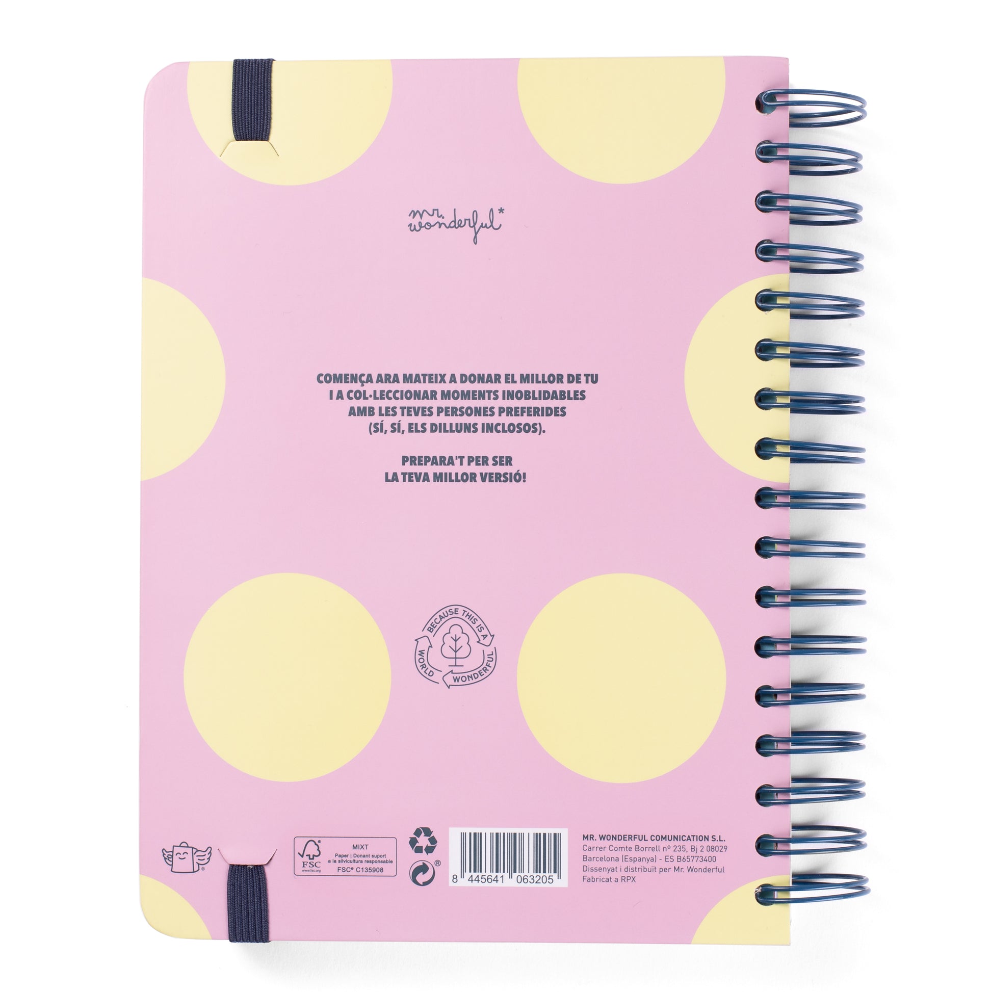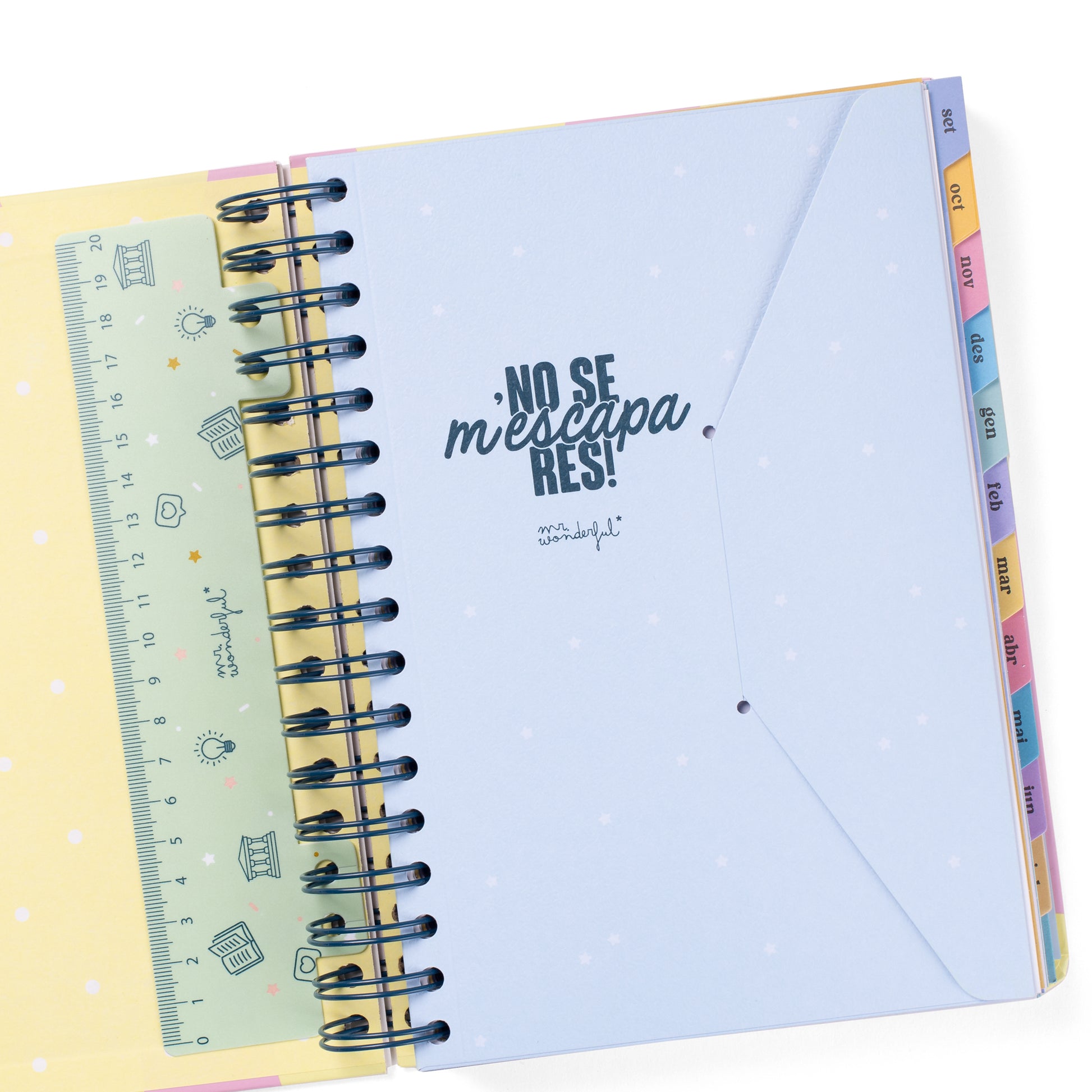 Agenda estil Wonder de Mr. Wonderful, amb organització diària, va de setembre de 2025 a finals d'agost de 2026. Aquesta agenda conté:
