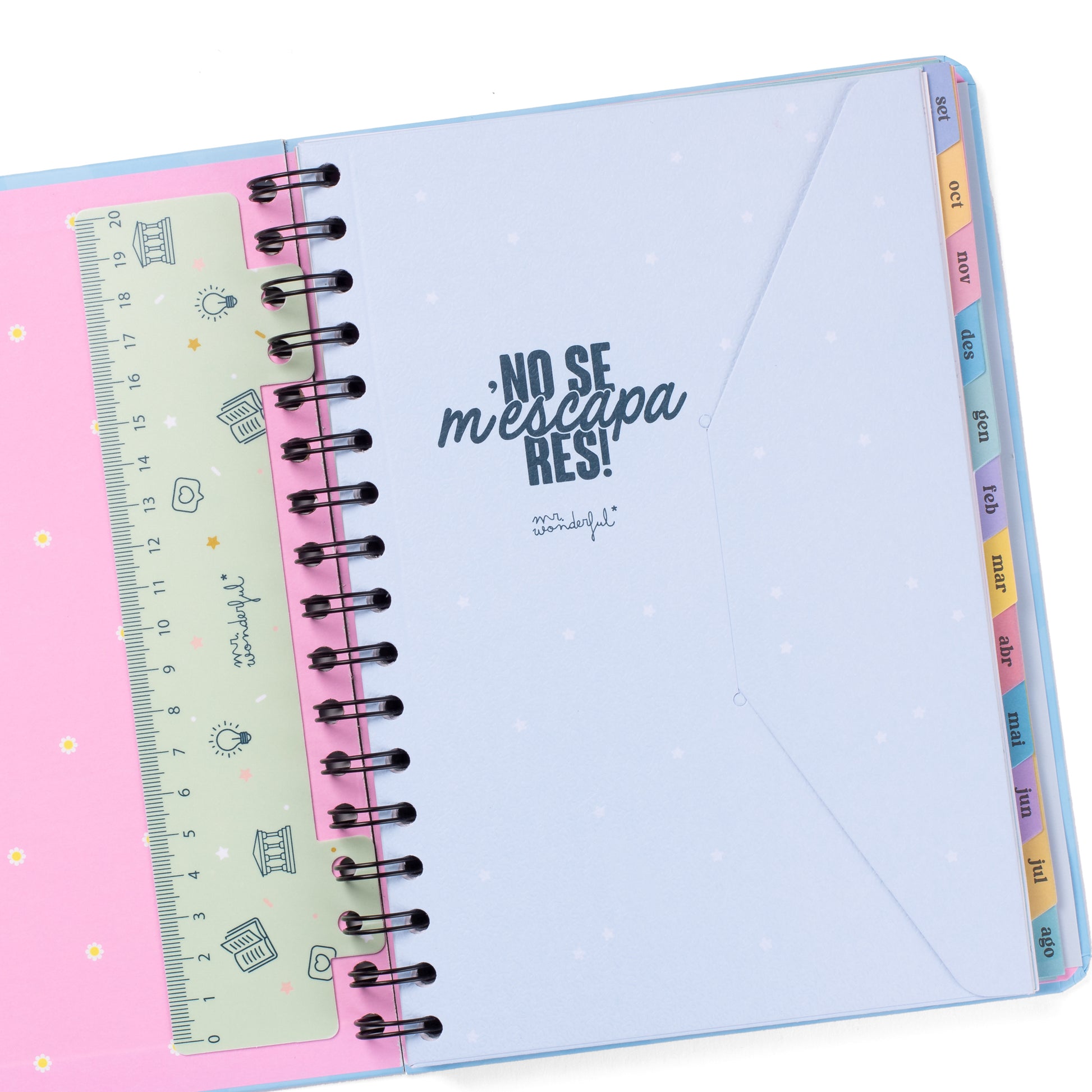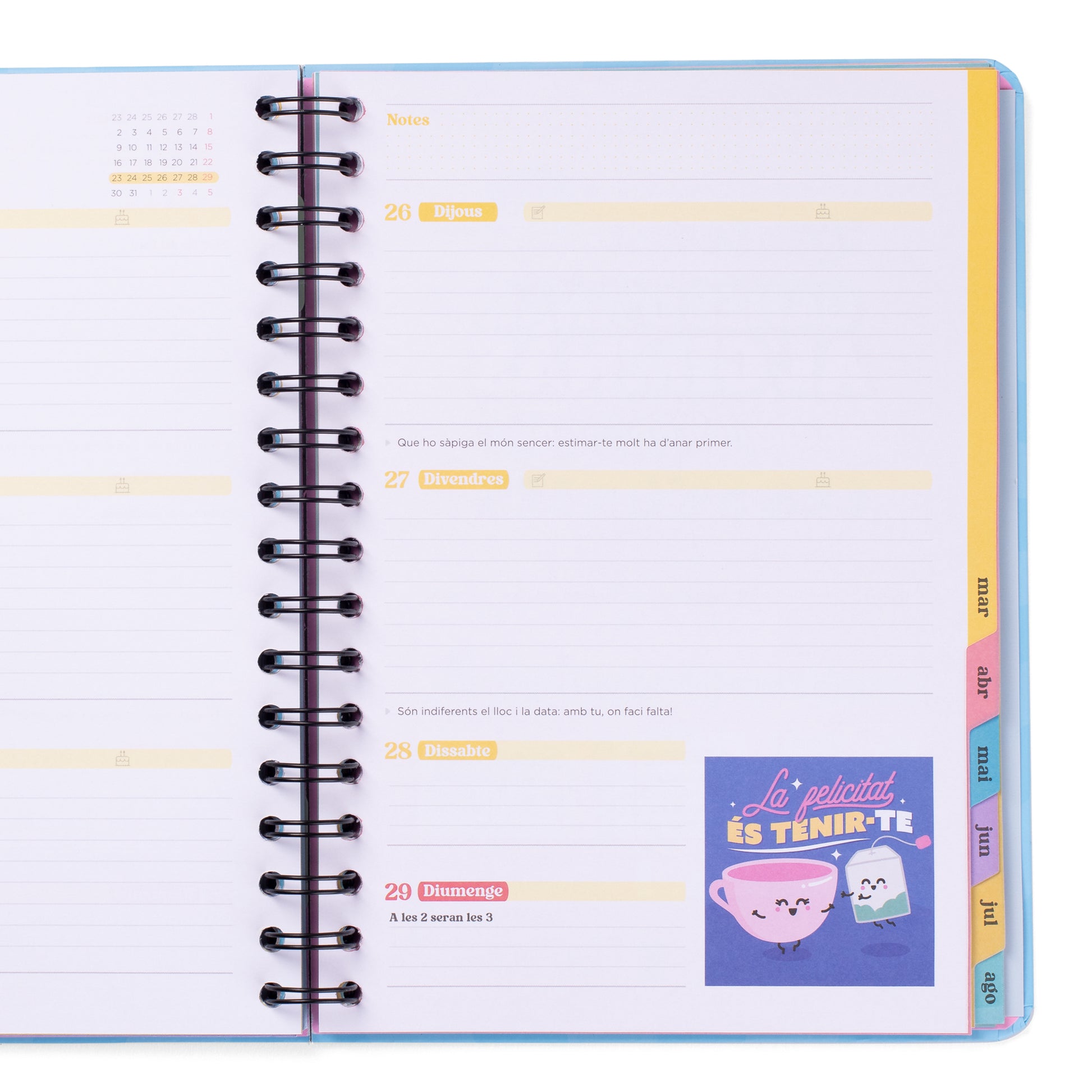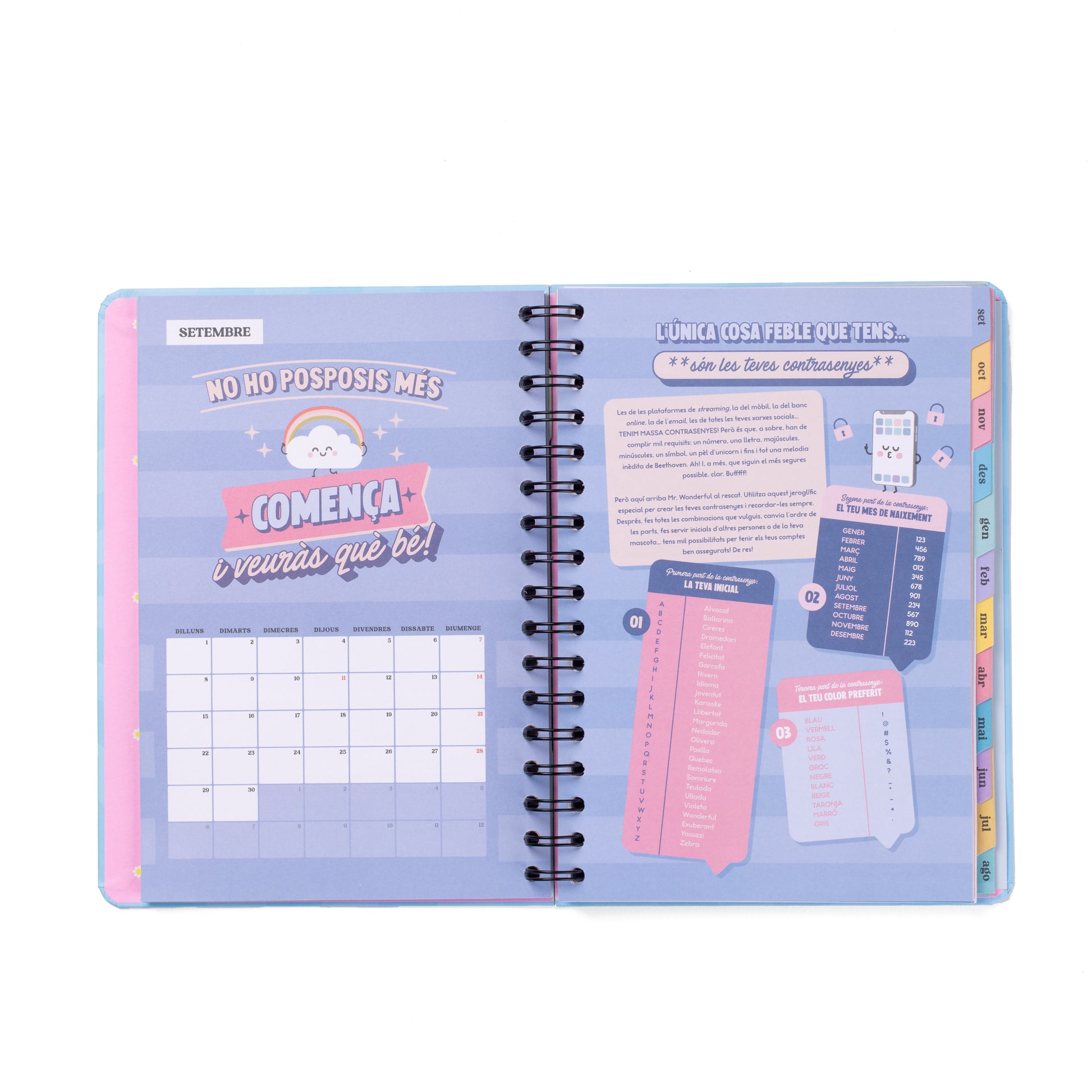 Agenda estil Wonder de Mr. Wonderful, amb organització setmanal, va de setembre de 2025 a la fi d'agost de 2026. Aquesta agenda conté: