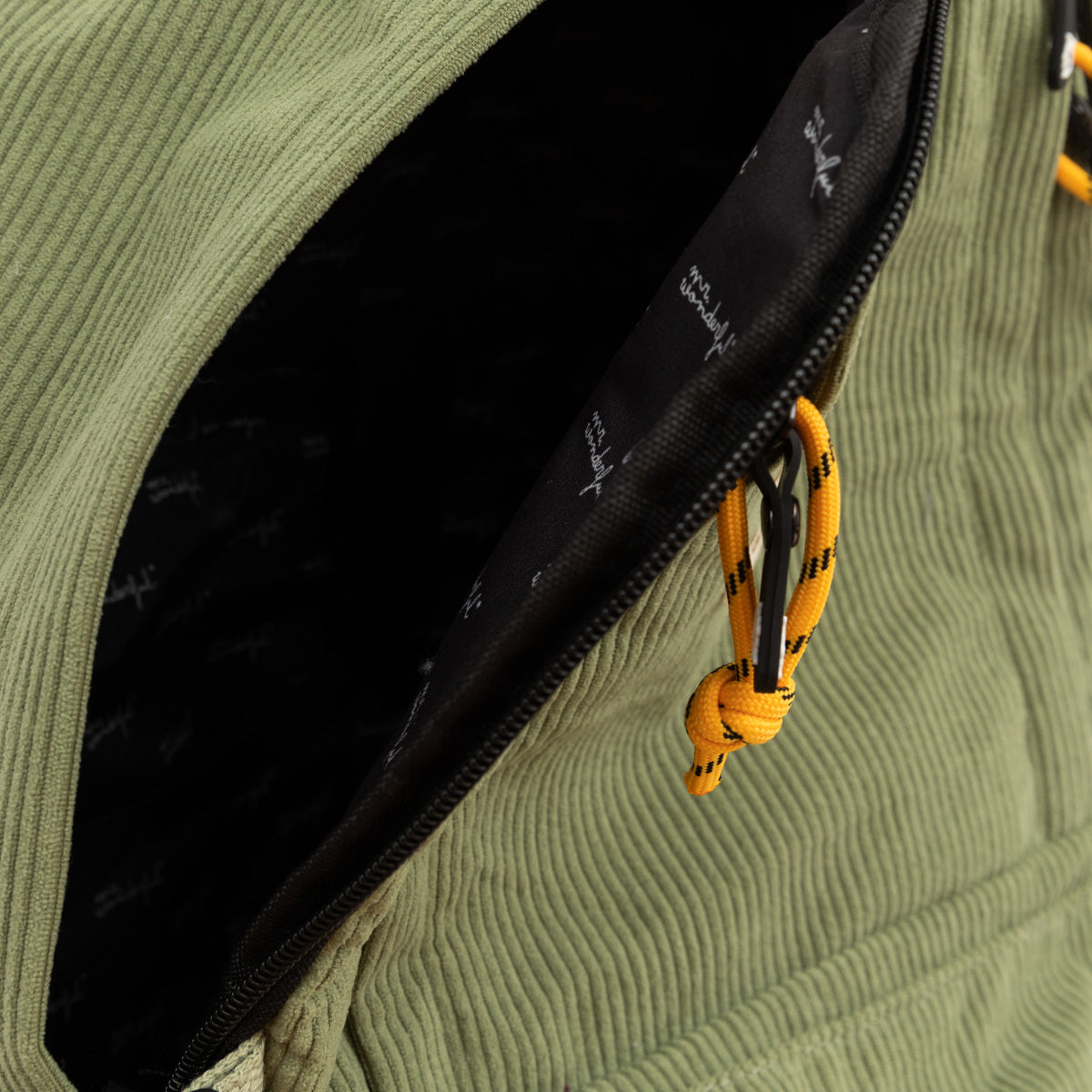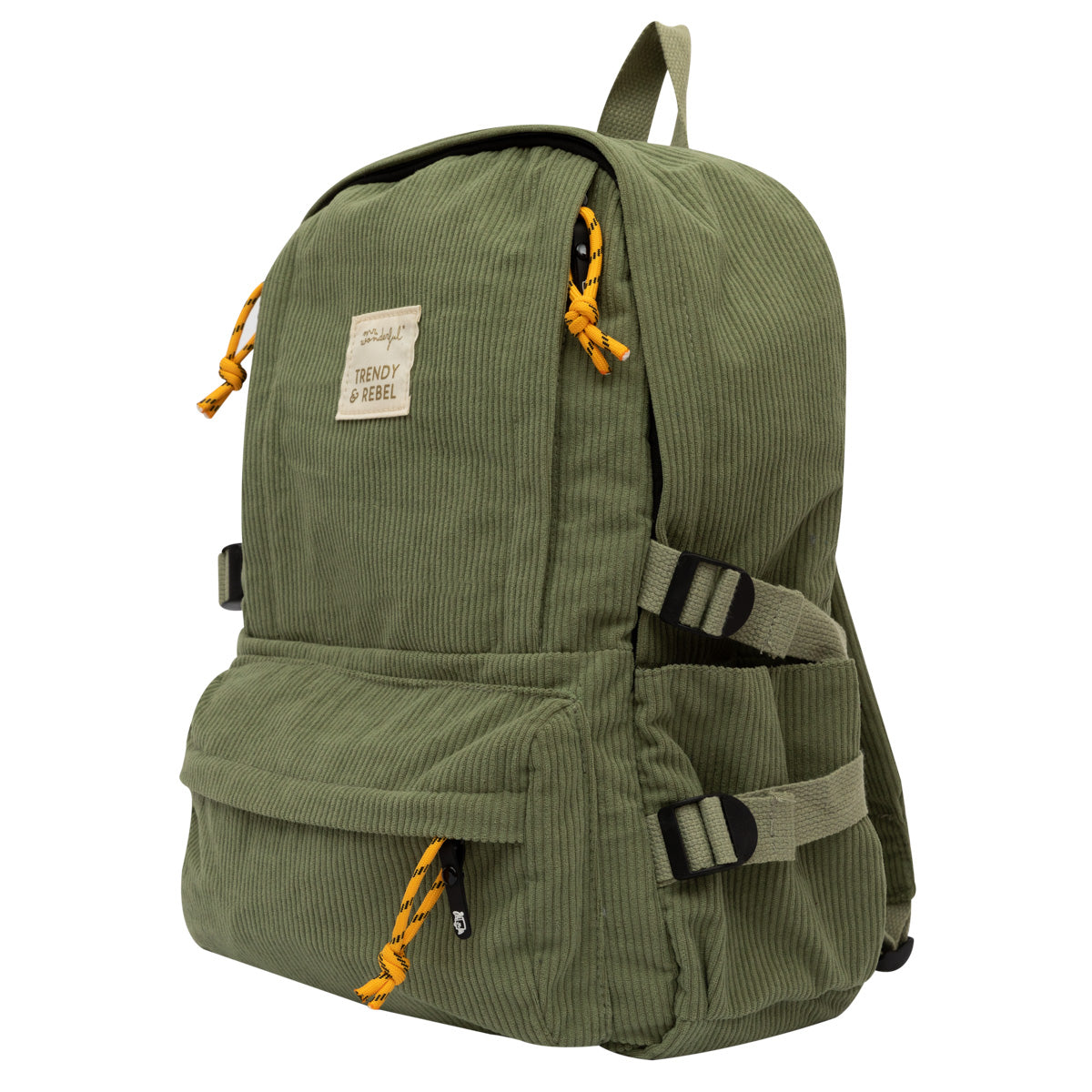 Mochila de poliéster con tacto de pana, con cierres de cremallera.
