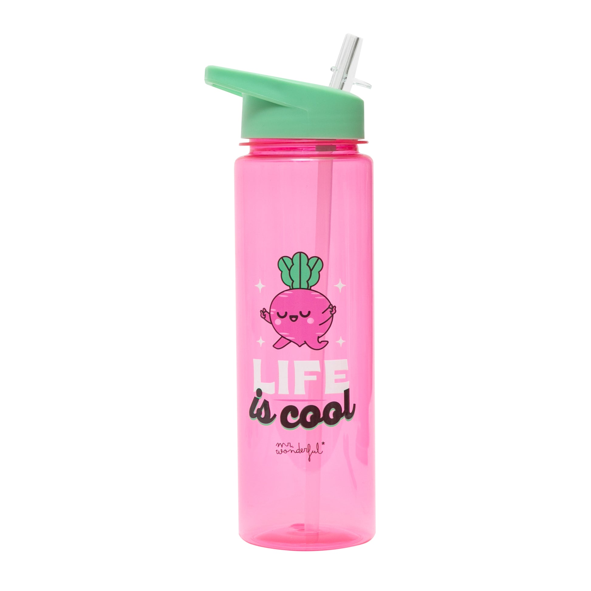 Botella reutilizable realizada en Tritan, un tipo de resina plástica totalmente segura y reciclable, libre de BPA. Cuenta con nuestra remolacha Wonder como protagonista del diseño, que aparece junto a un divertido mensaje en inglés. Capacidad: 600 ml. Con cierre hermético y muy ligera.