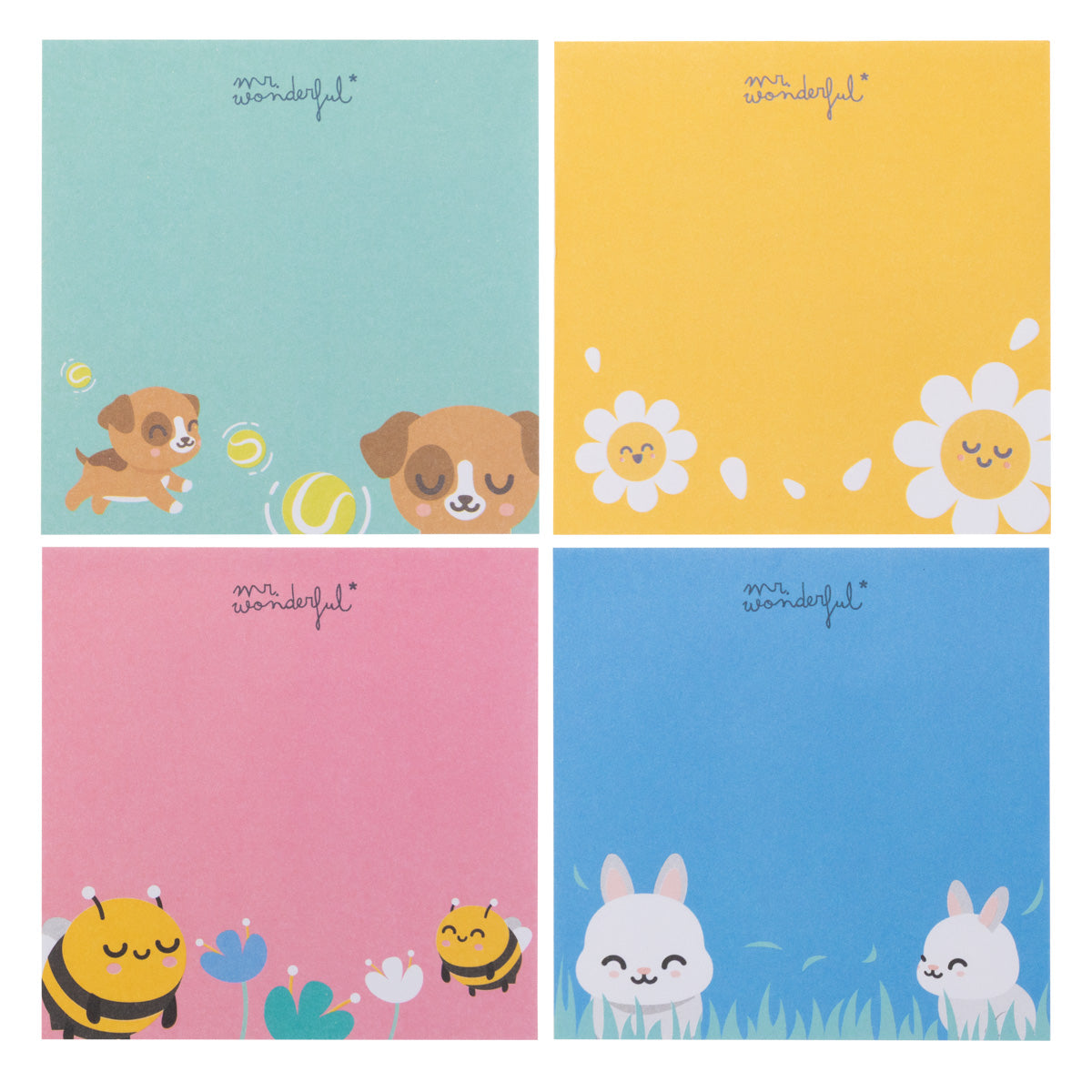 Cajita de cartón cuyo diseño imita a una caja de palomitas. En su interior encontramos un total de 200 notas de papel sueltas, con 4 diseños distintos que se van alternando (margarita, perro, conejo y abeja).