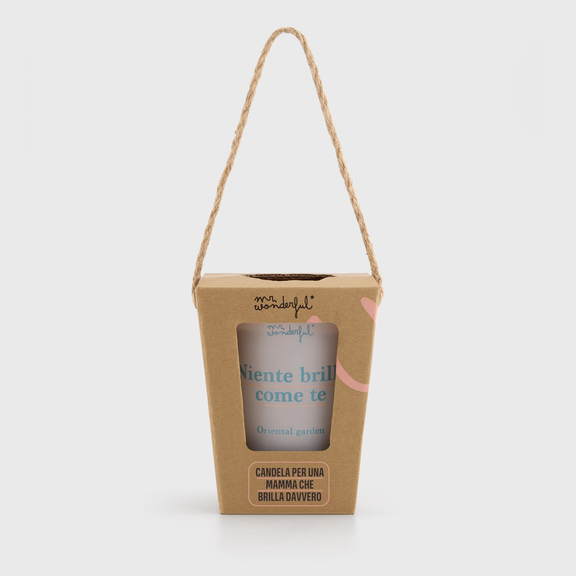 Candela profumata realizzata in cera vegetale, presentata in un contenitore di ceramica. Il suo messaggio è ideale per un regalo alla mamma, ma è abbastanza aperto da poter essere regalato in altre occasioni e a diversi tipi di persone. Profumo: Oriental garden (fiore di loto).