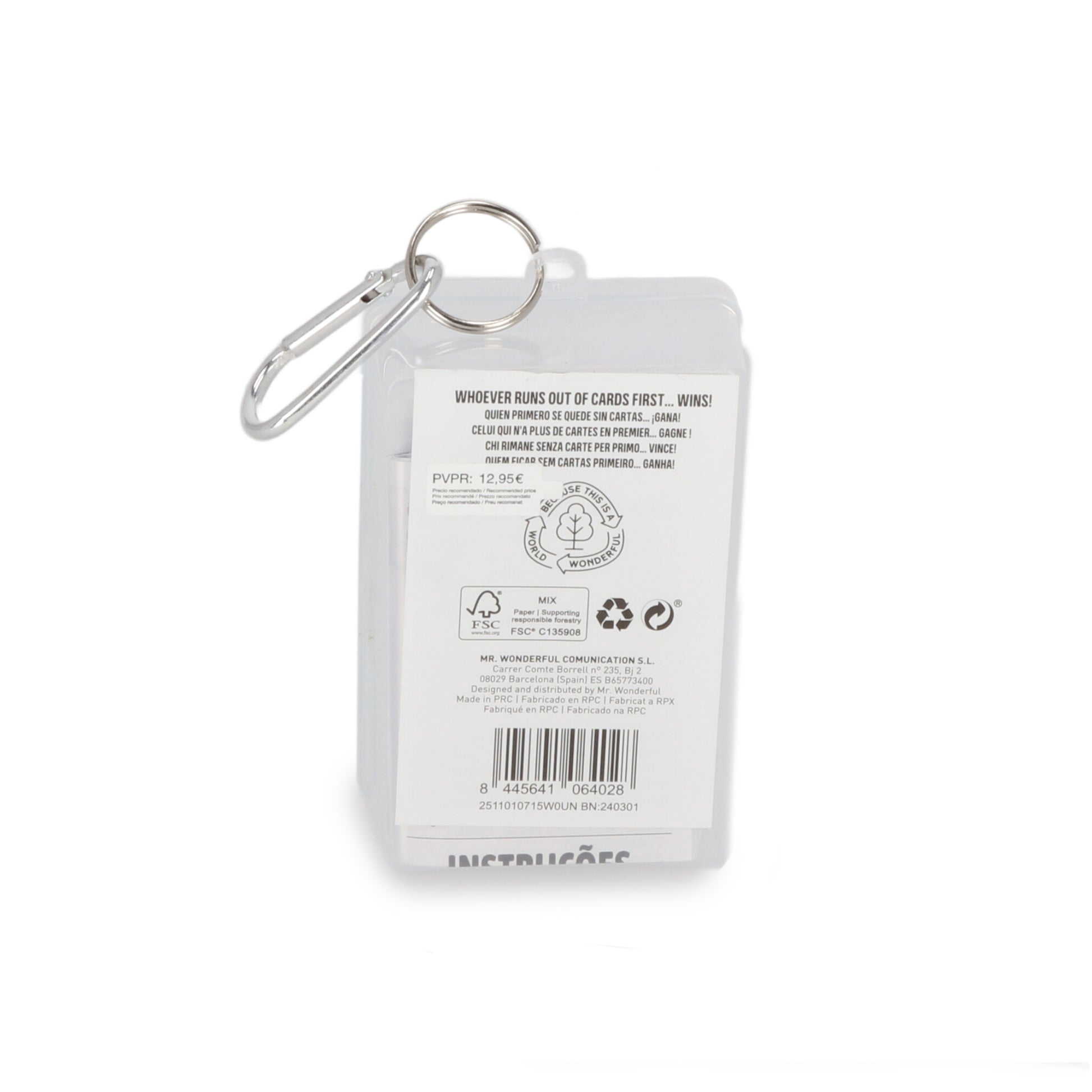 Juego de cartas muy divertido y dinámico, cuya finalidad consiste en quedarse sin ninguna de ellas. Sus instrucciones de juego están basadas en un popular juego. Contiene 108 cartas, algunas de ellas numéricas y otras que se utilizan como comodines o herramientas para beneficiar a la partida del propio jugador o bien molestar al resto de jugadores, haciéndoles perder turnos o ganar cartas. Contiene instrucciones.