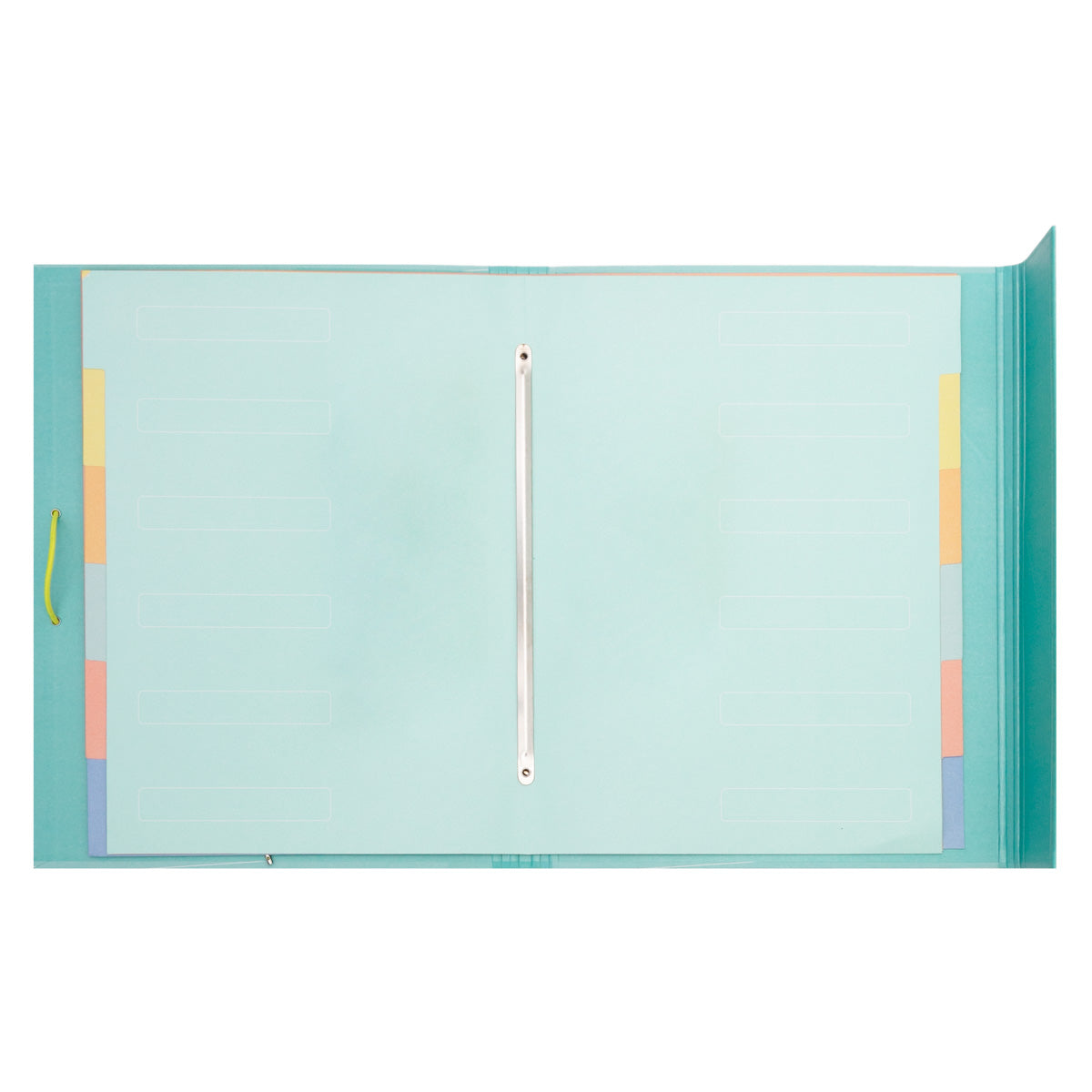 Carpeta separadora con solapas y 12 separadores en su interior, además de cierre con goma elástica.