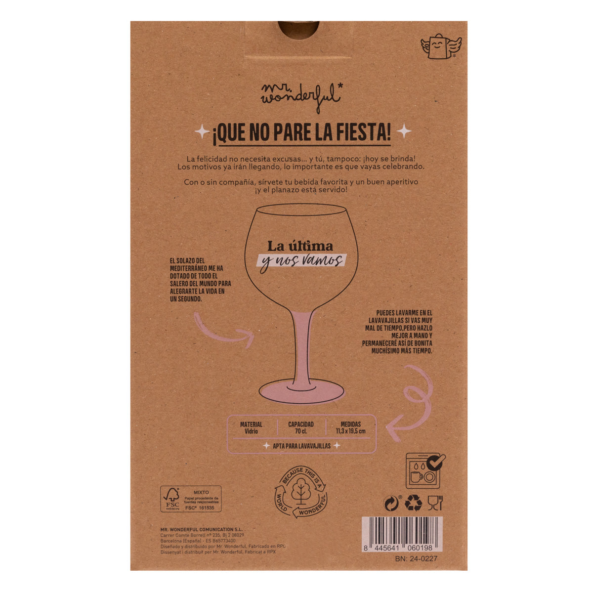 Copa de balón con mensaje, realizada en vidrio. Capacidad: 70 cl. ¡Celebra la vida con esta copa de balón tan divertida!