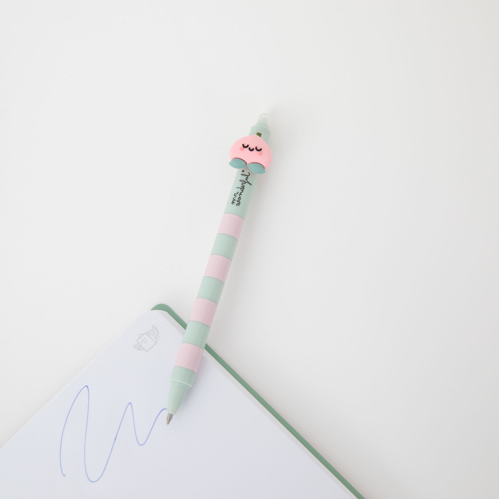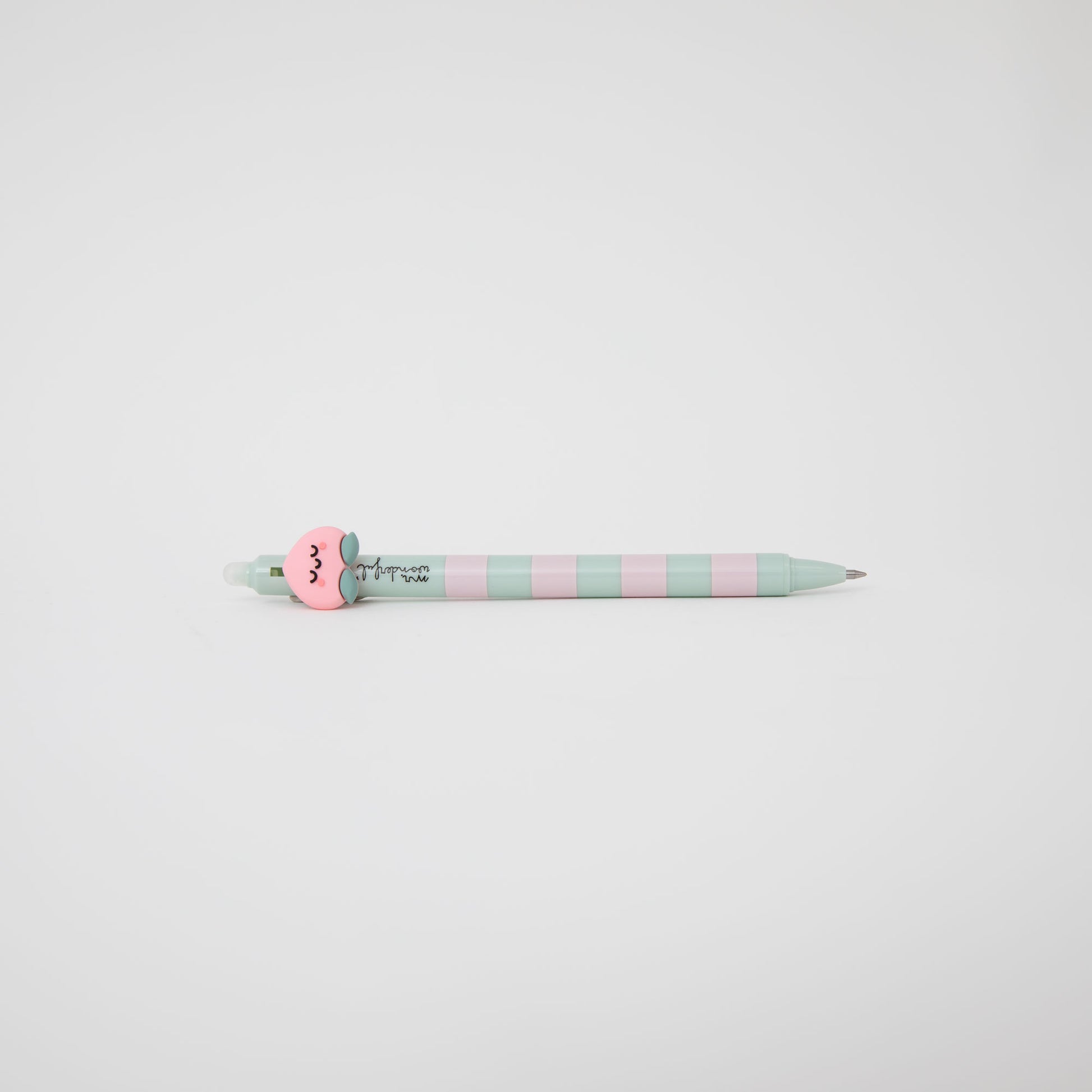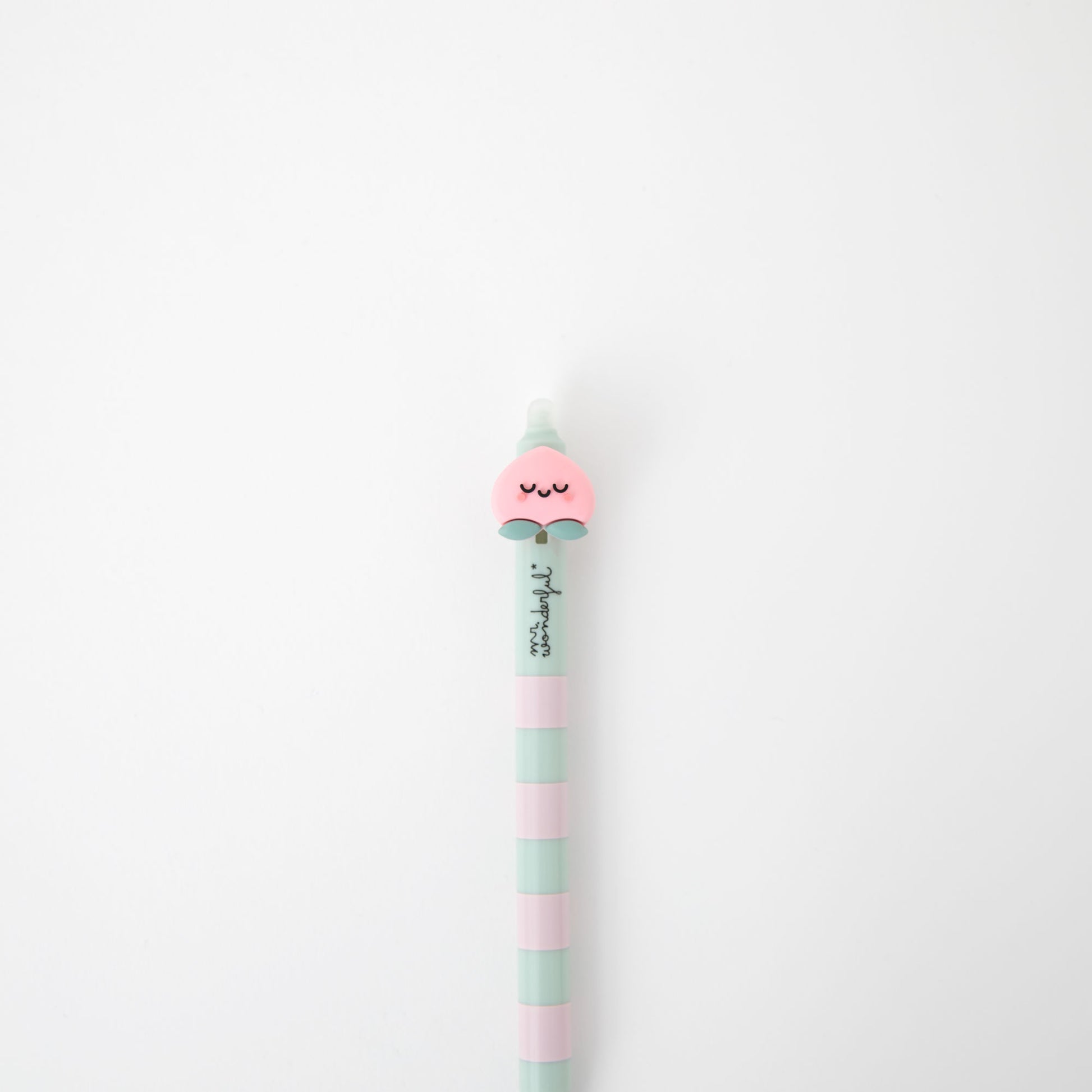 Boli borrable con un melocotón Mr. Wonderful en su extremo. Color de la tinta: azul.