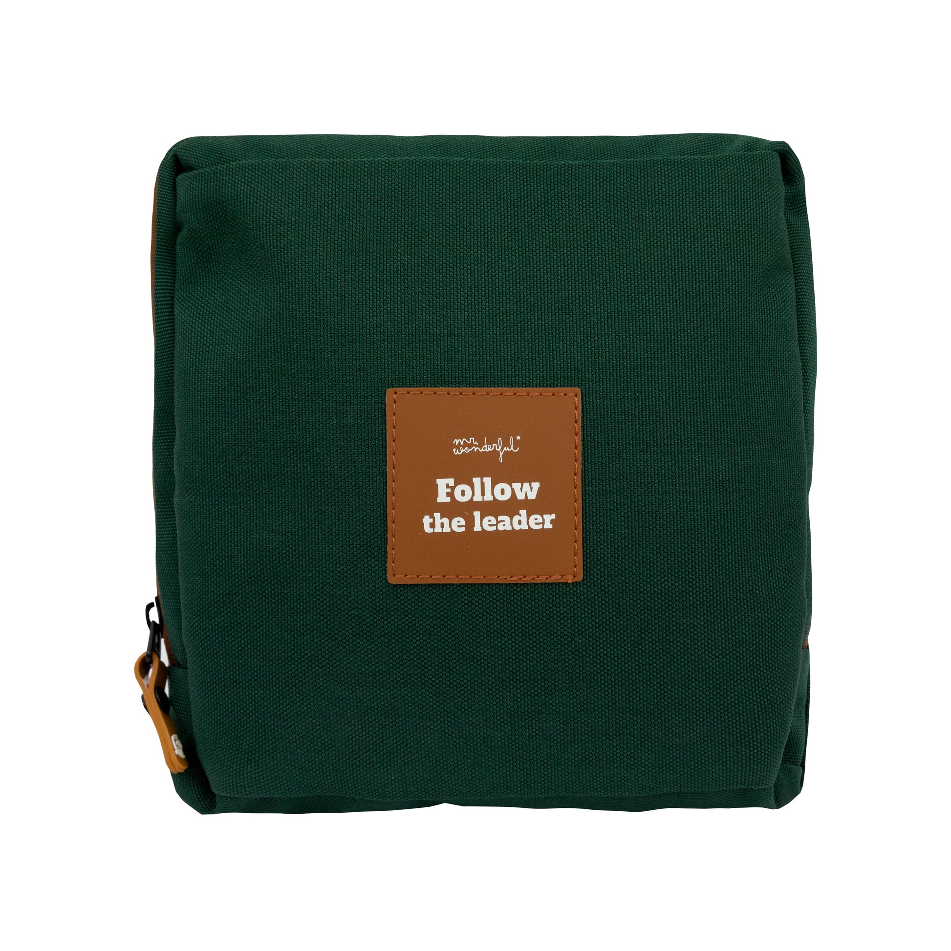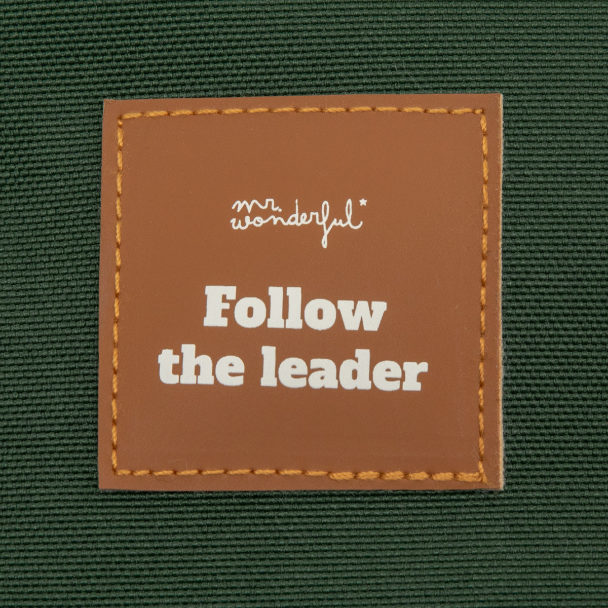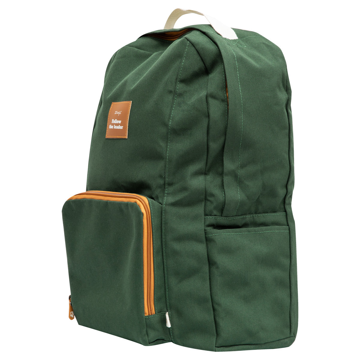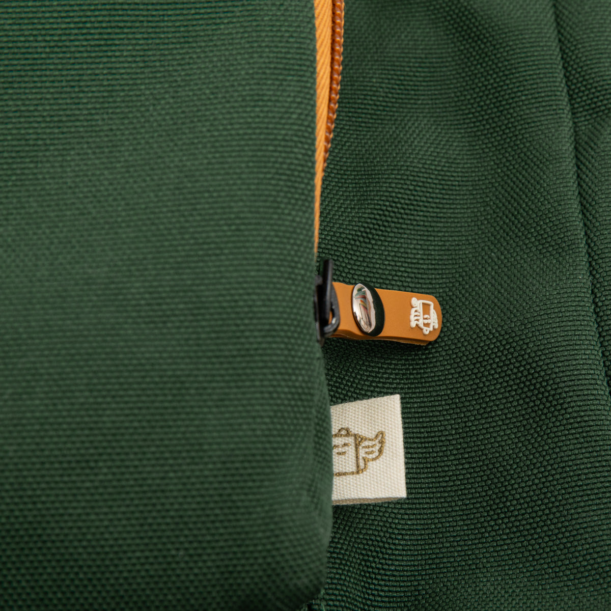Cuenta con varios detalles realizados en PU: el parche en el que encon tramos su divertido mensaje y los tiradores de las cremalleras.