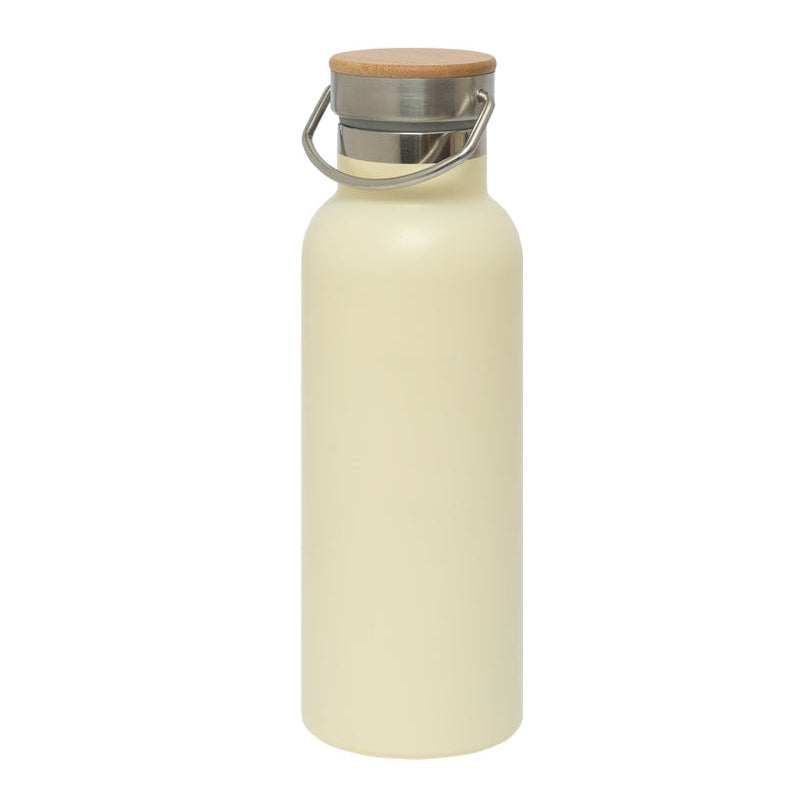 Garrafa térmica, fabricada em aço inoxidável 304 de camada dupla. Mantém as bebidas frias até 24 horas e quentes até 12 horas. Com fecho hermético, inodora e leve. Sem BPA. A sua tampa é de madeira e inclui uma alça para ser mais fácil de transportar. Possui uma mensagem motivacional impressa nela. Capacidade: 600 ml.