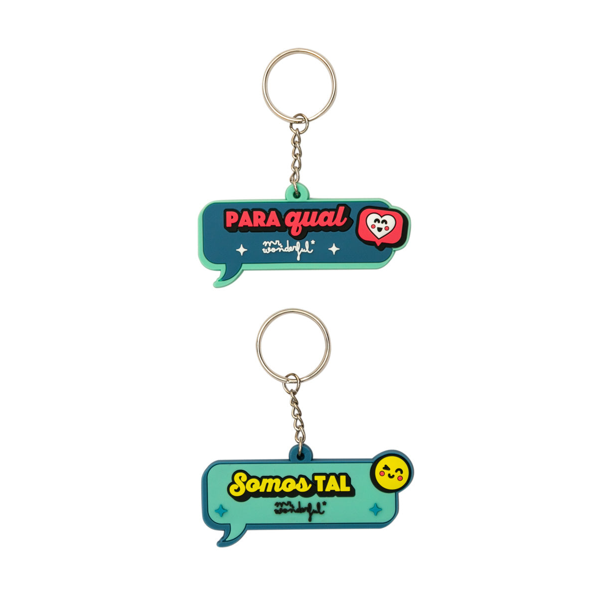 Os porta-chaves foram fabricados em borracha e têm um desenho brilhante. Cada porta-chaves possui uma mensagem dividida entre as suas duas faces, uma prenda ideal para ofereceres ao teu melhor amigo, ao teu amor, à tua irmã… a essa pessoa com quem queres continuar a partilhar momentos maravilhosos!