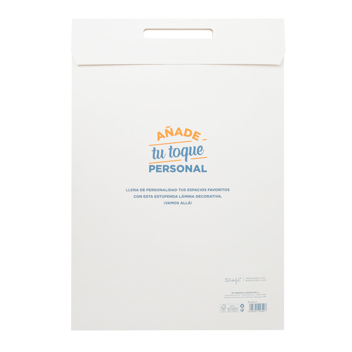 Lámina decorativa con mensaje inspirador, realizada en papel de 210 gsm. El packaging incluye una cómoda asa para transportarla.