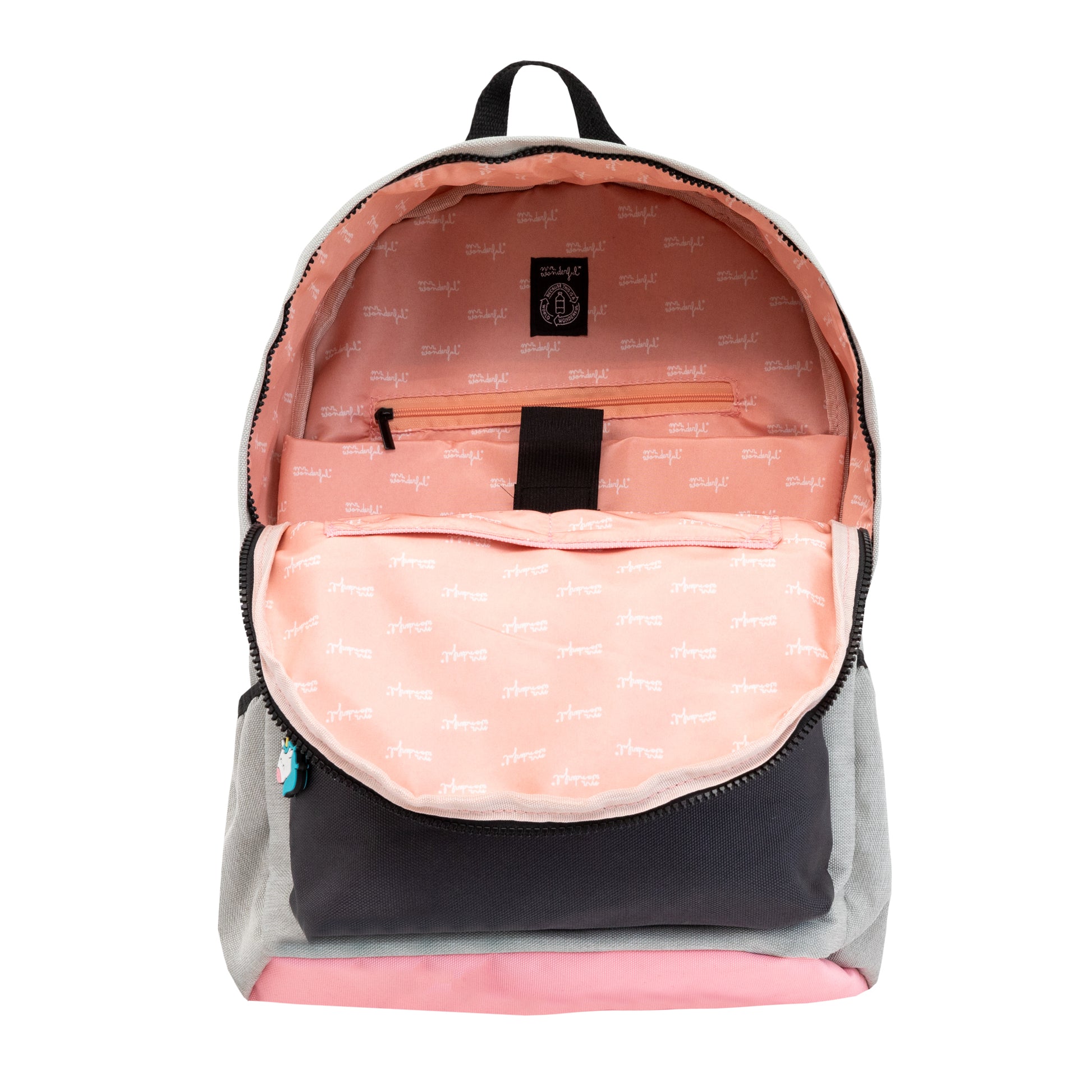 Mochila escolar feita em rPET, um material 100% reciclável obtido a partir da reciclagem de garrafas de plástico. Destaca o unicórnio Mr. Wonderful como elemento principal do design. Com alças ajustáveis, costas acolchoadas e vários compartimentos internos, um deles especialmente pensado para transportar o computador portátil de forma confortável e segura. Com dois bolsos laterais, ideais para levar a garrafa e/ou o lanche, e com a parte inferior do bolso frontal completamente estampada, o que lhe confere originalidade.