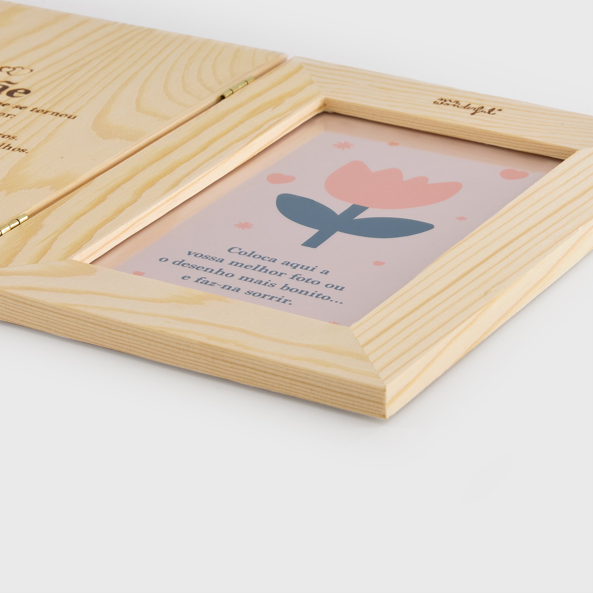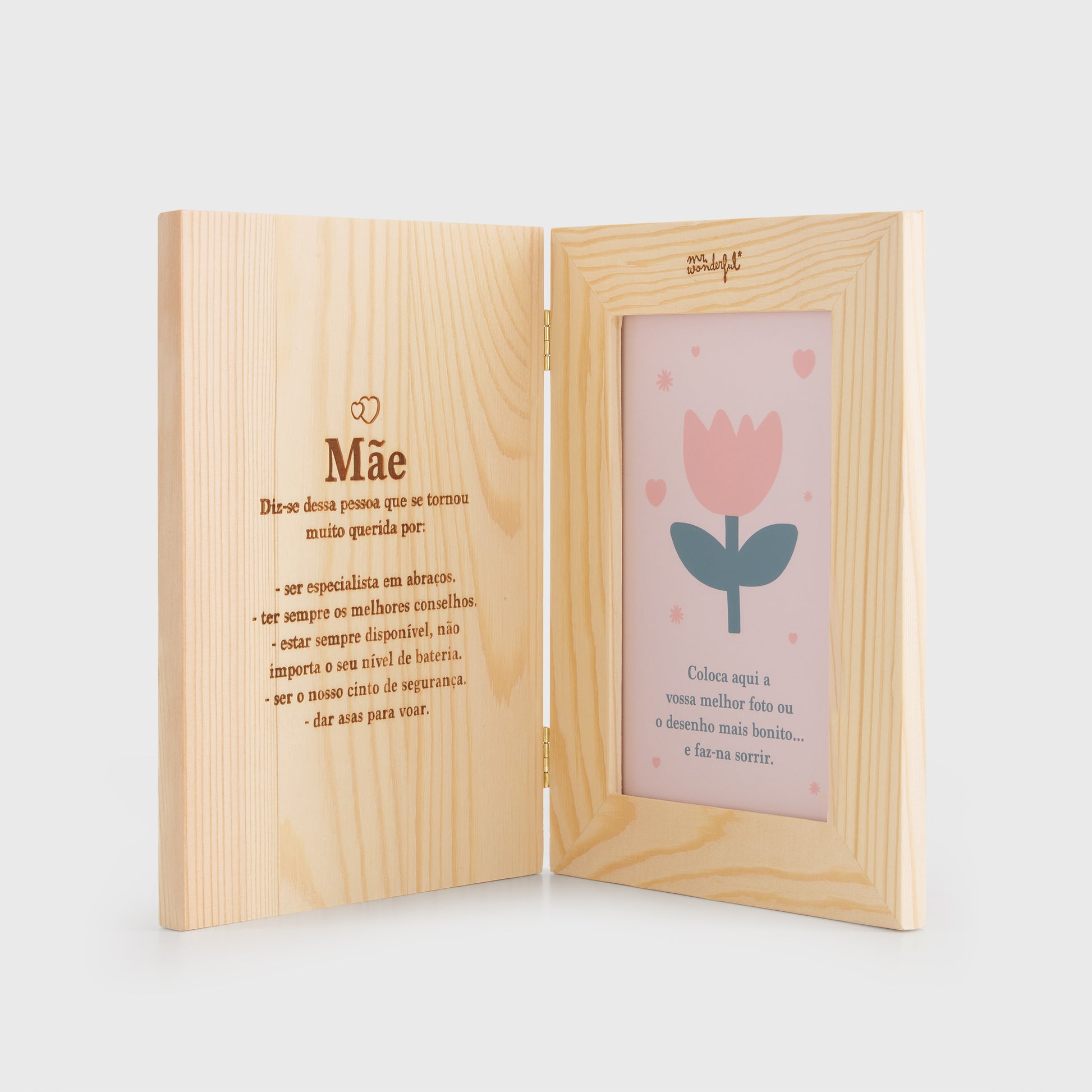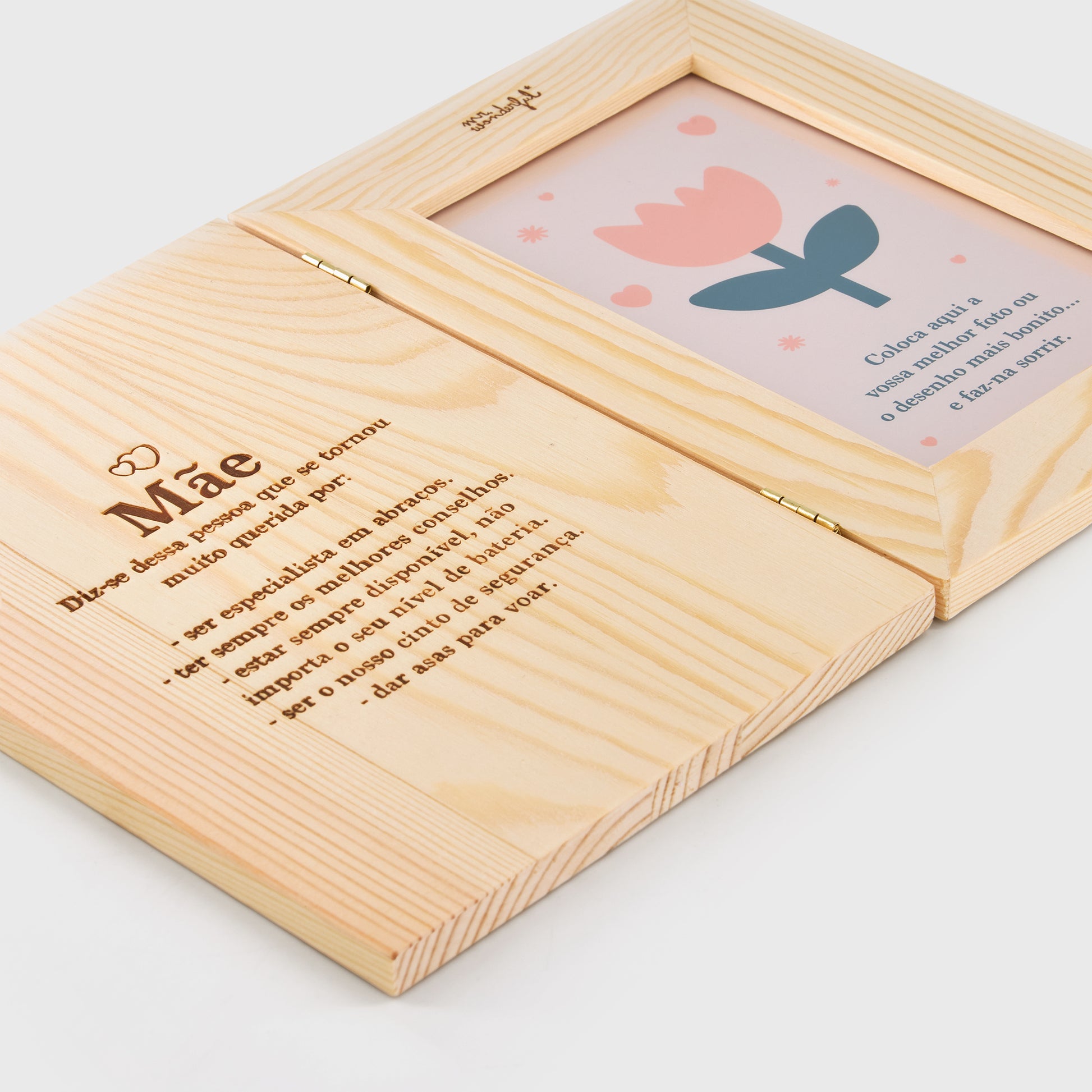 Ao abri-la, encontramos um bonito texto gravado na parte de trás da "capa", que é, na verdade, uma definição emotiva de "mãe".