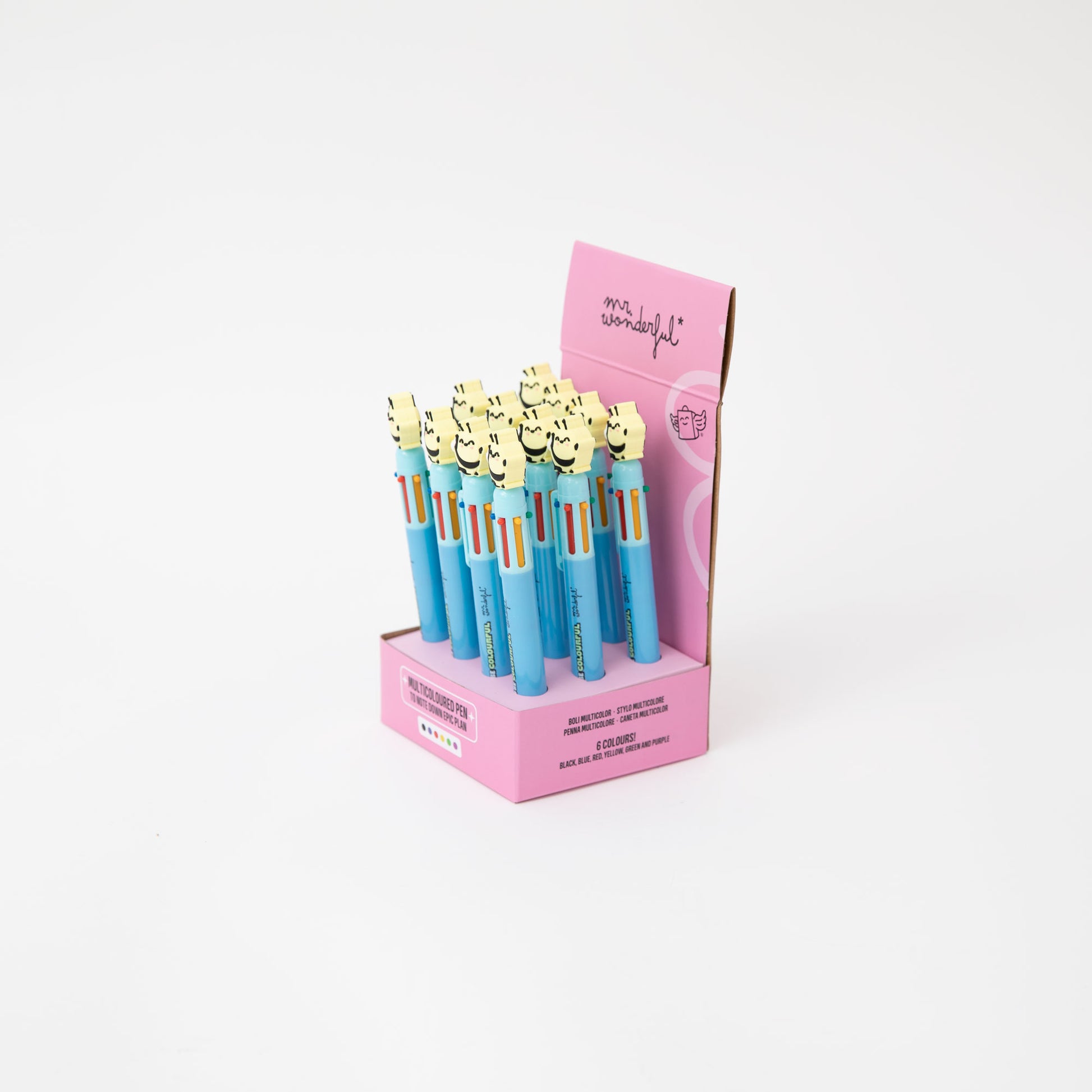 Bolígrafo multicolor, cuenta con una abeja Mr. Wonderful en uno de sus extremos.