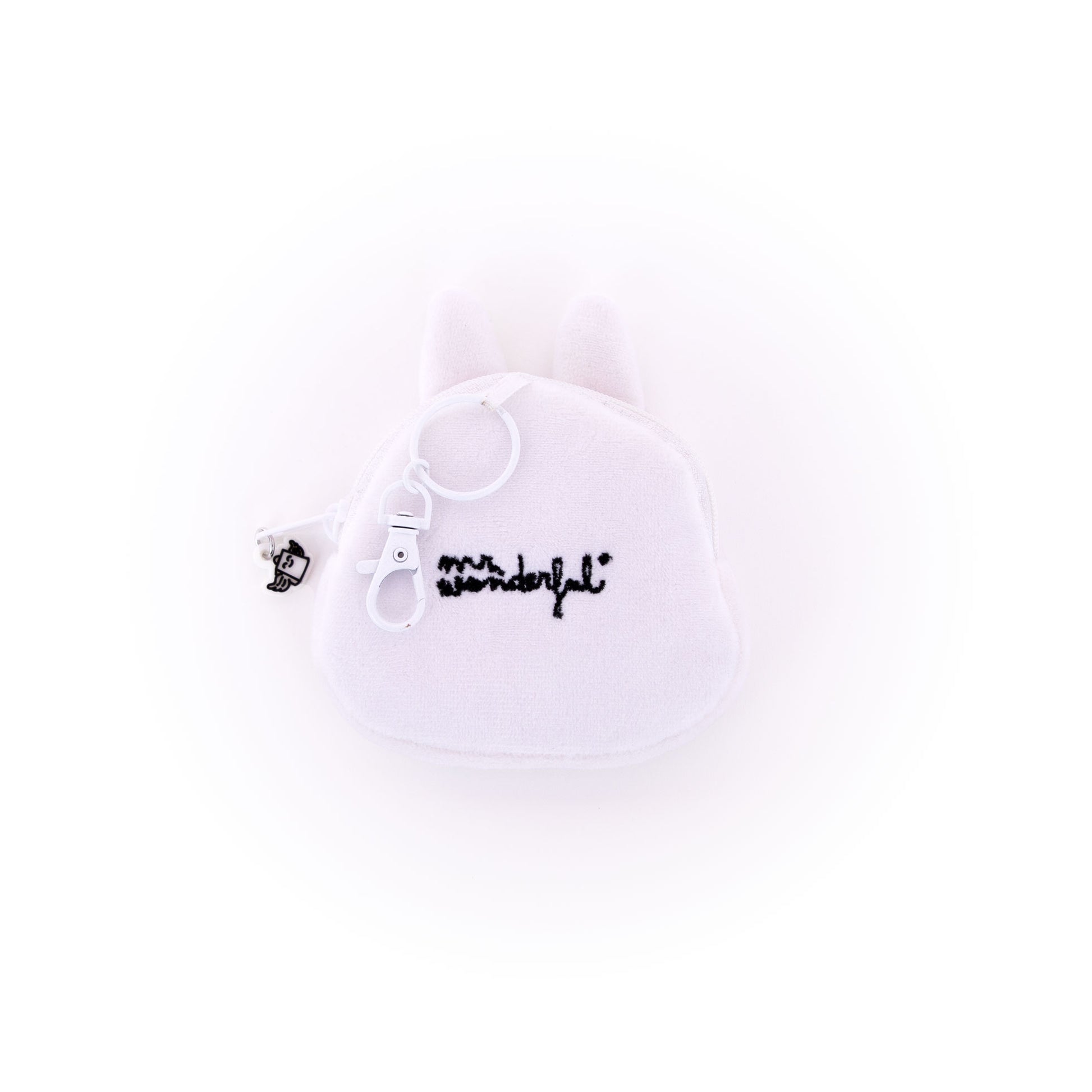 Pequeño monedero realizado en poliéster, de peluche, con forma de un divertido personaje Mr. Wonderful y con cierre de cremallera. Lleva cosida una cadena y arandela metálicas, lo que lo convierte a su vez en un práctico llavero.