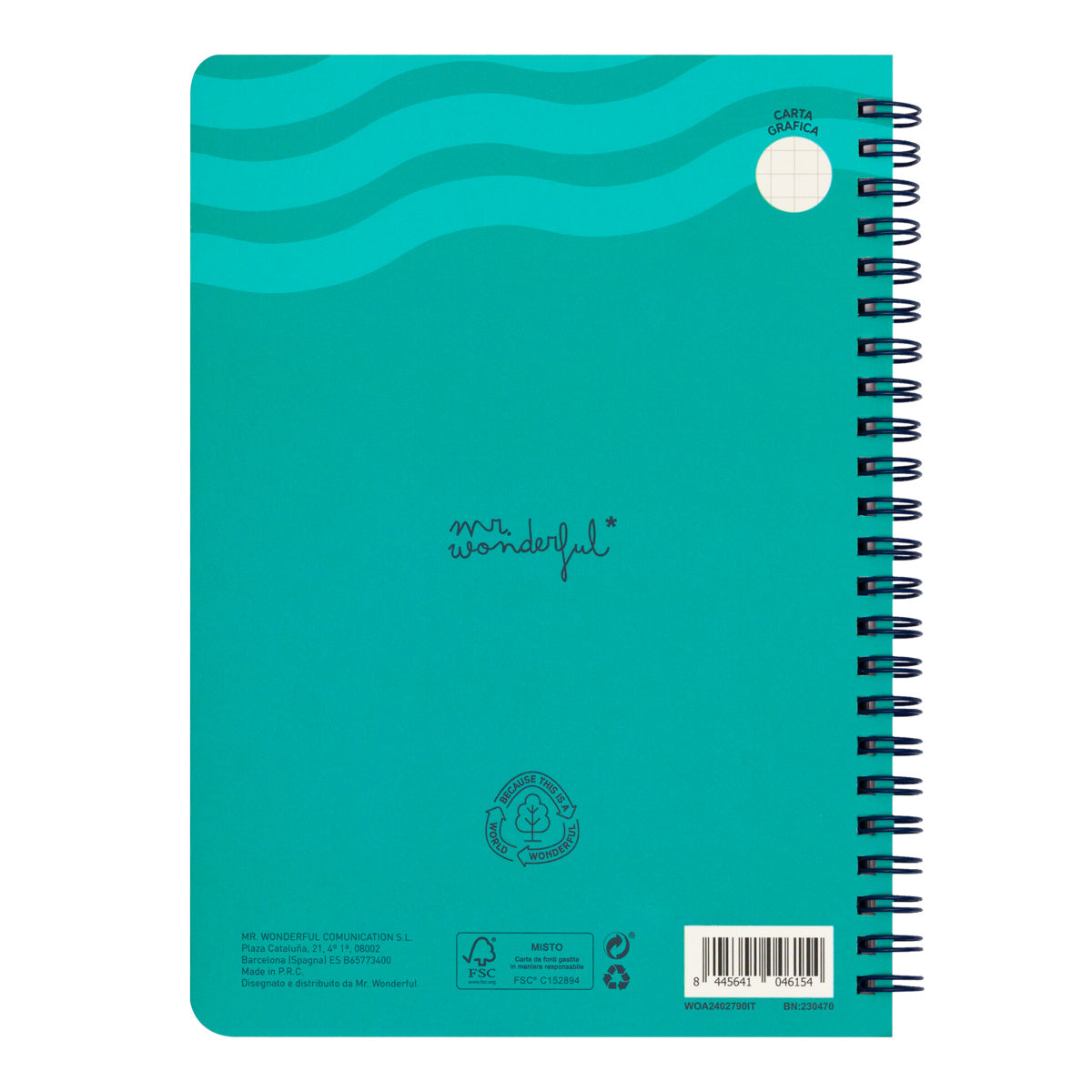 Quaderno formato A5 con rilegatura a spirale, copertina rigida e 80 fogli quadrettati da 80 gr all'interno. Include un foglio di adesivi.