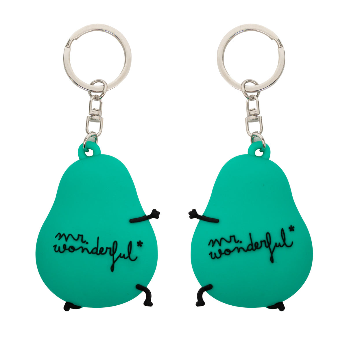 Set de 2 llaveros realizados en caucho, con forma de aguacate.