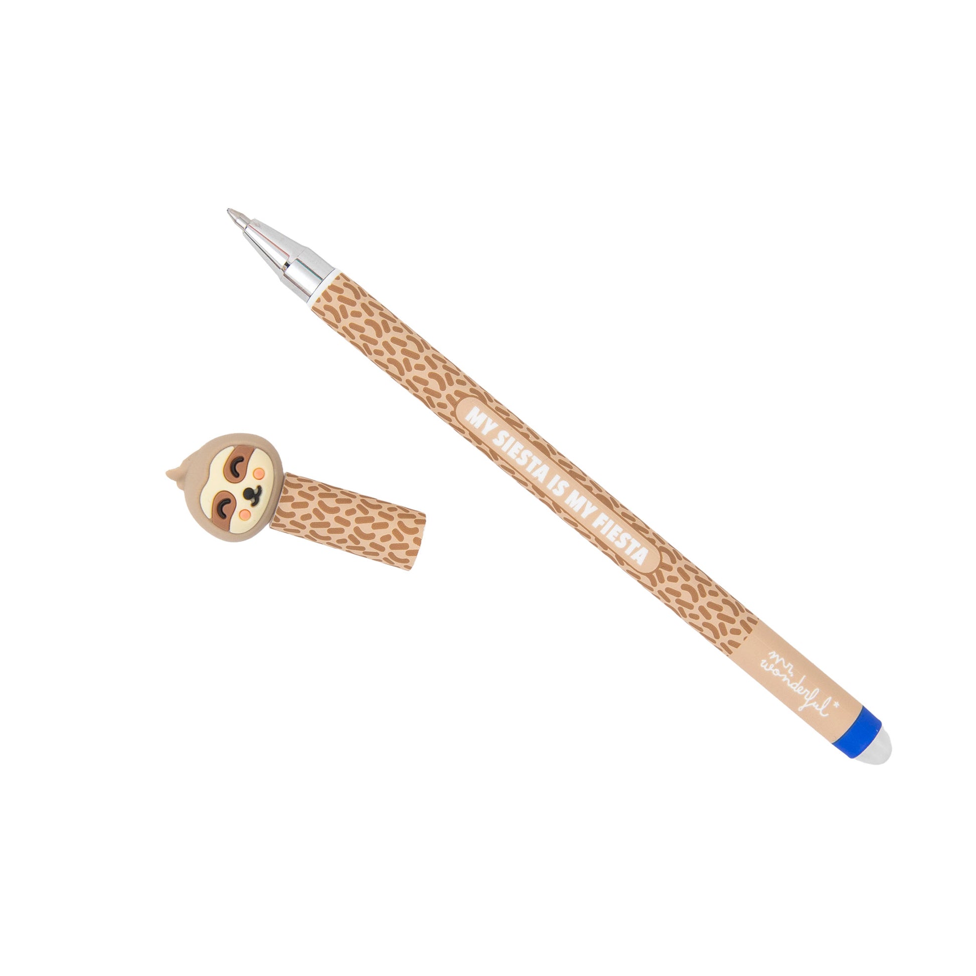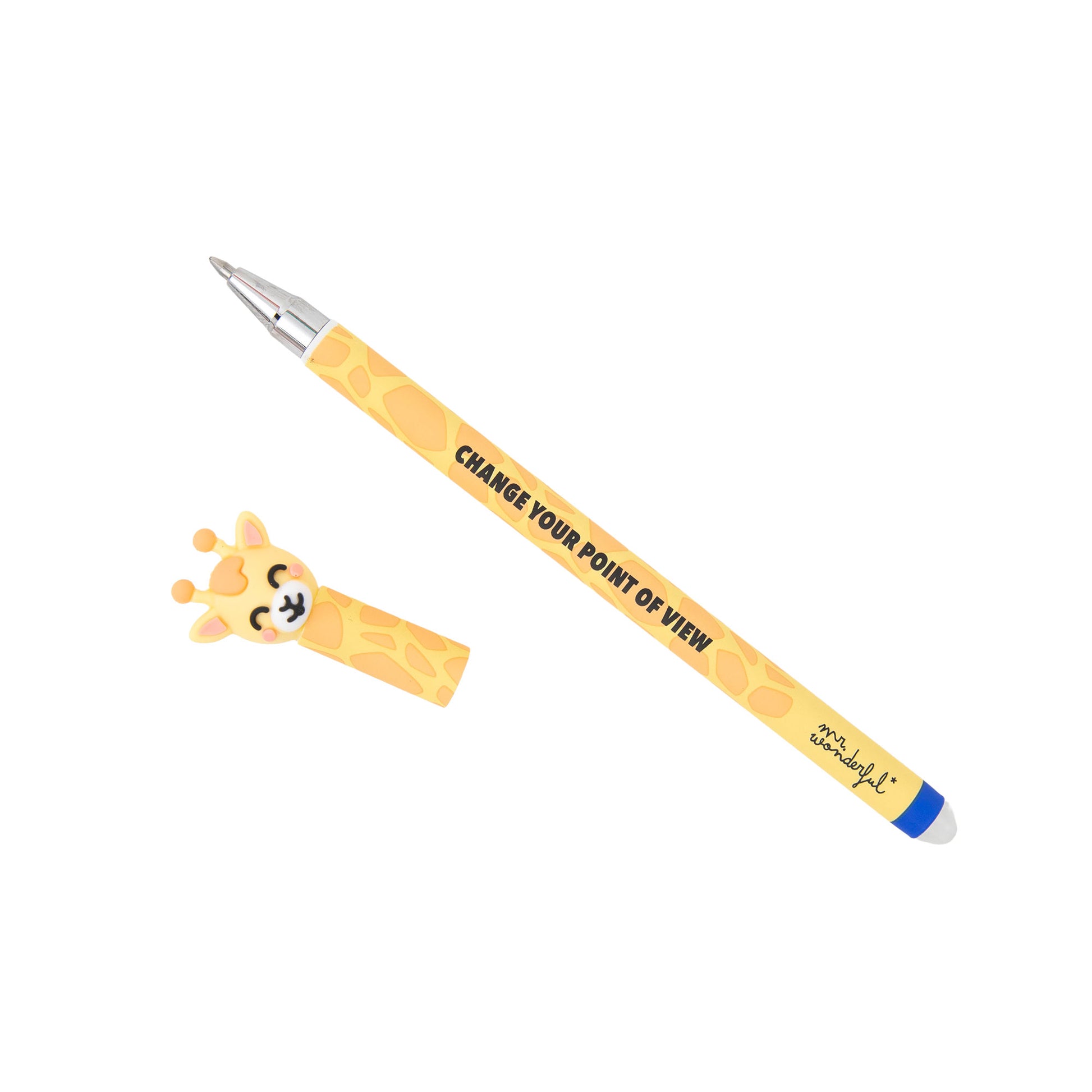El cuerpo del bolígrafo tiene un tacto muy suave e incluye una goma de borrar en el extremo opuesto al del personaje que permite borrar de forma rápida y sencilla lo ya escrito.
