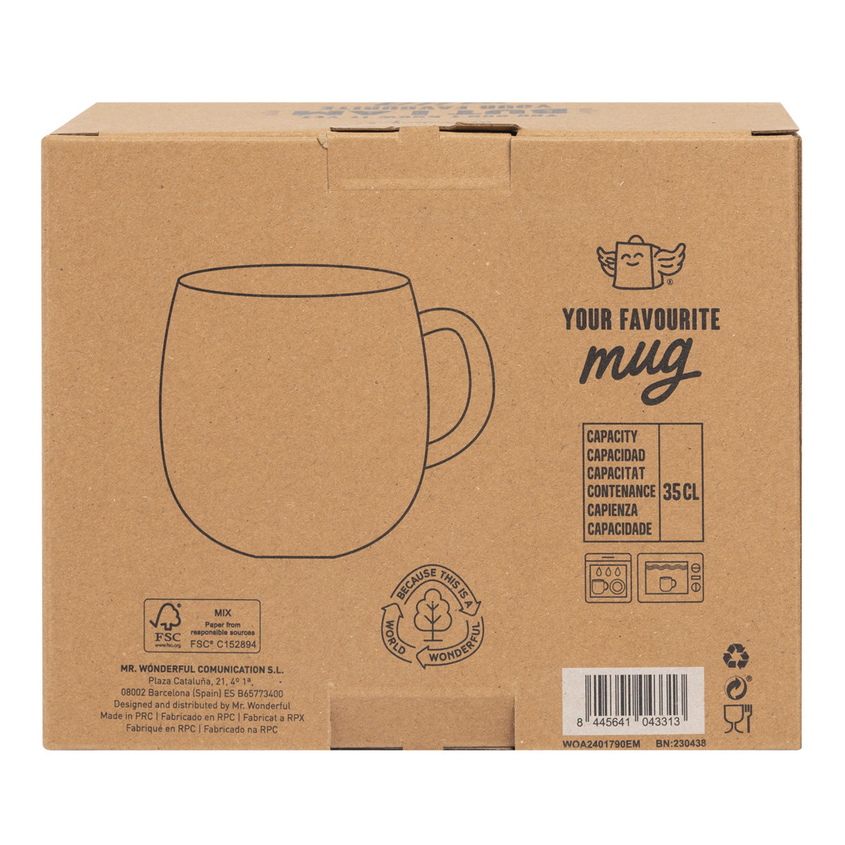 Taza de cerámica con nuestras cerezas en relieve y un sencillo pero bonito mensaje en inglés. Su asa y el interior son de distinto color al del exterior de la taza, lo que le aporta originalidad.
