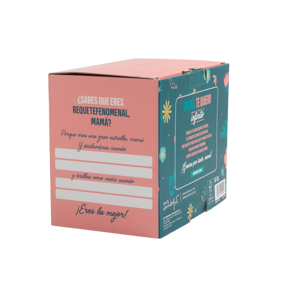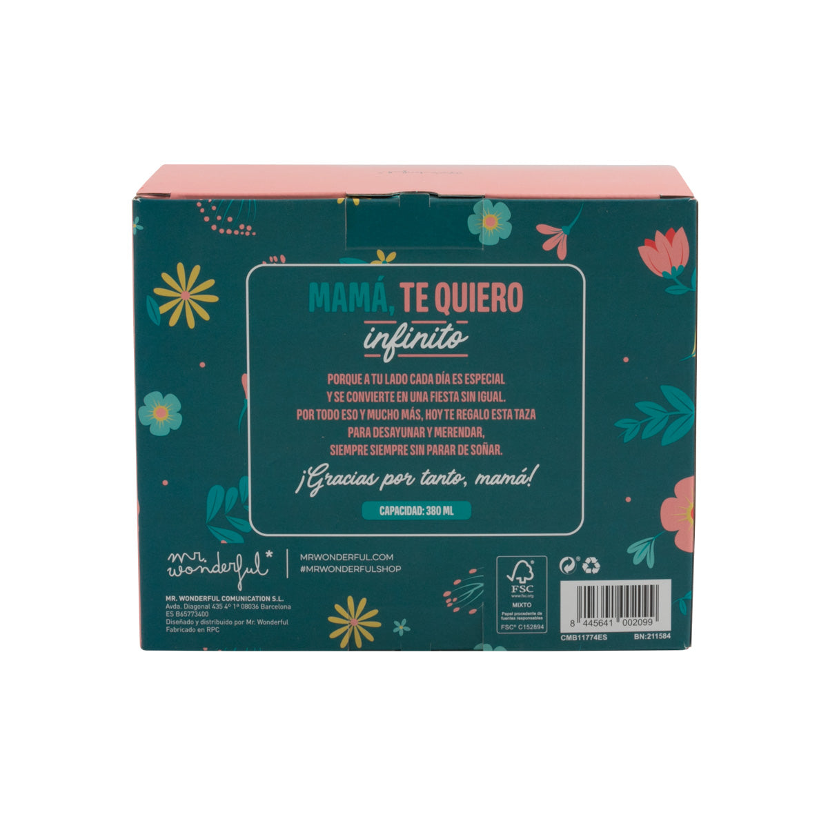 Bonita taza realizada en cerámica con relieve y un mensaje dirigido a madres. En la parte trasera del packaging encontramos un textito rellenable para personalizar y au mentar todavía más la experiencia regalo. La taza tiene una capacidad de 380 ml y es apta pa ra microondas y lavavajillas.