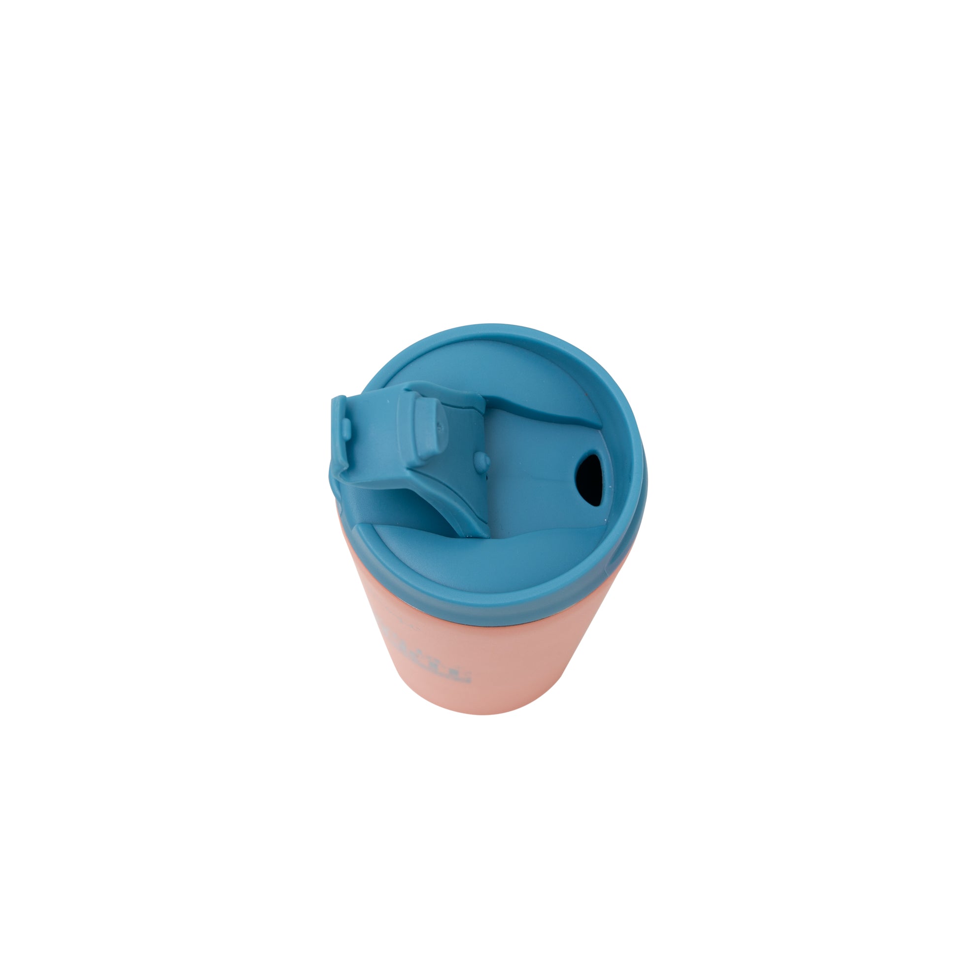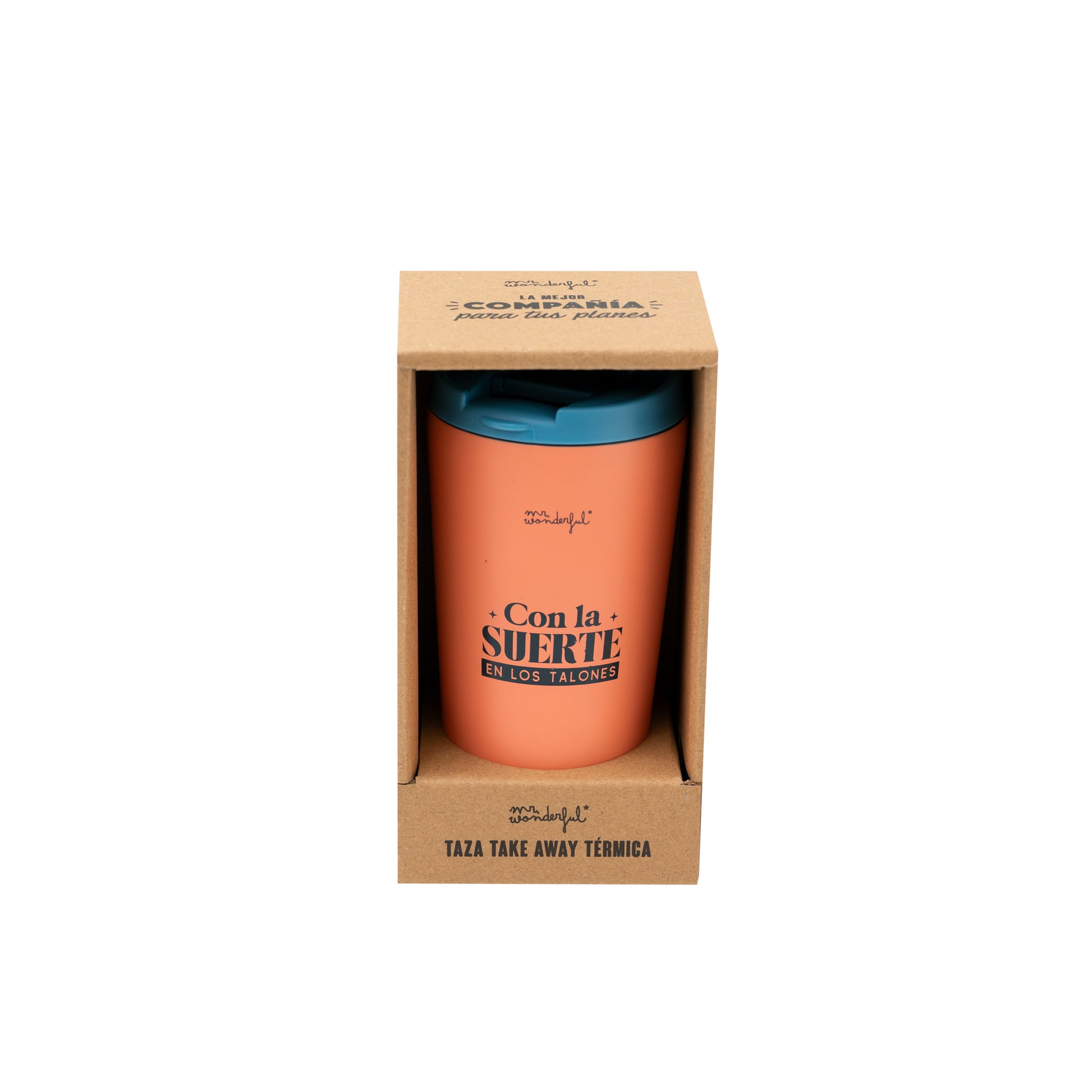 Taza take away térmica de 370 ml de capacidad, realizada con acero inoxidable de doble pared. Mantiene el calor y el frío durante 10 horas. Totalmente libre de BPA y con cierre hermético.