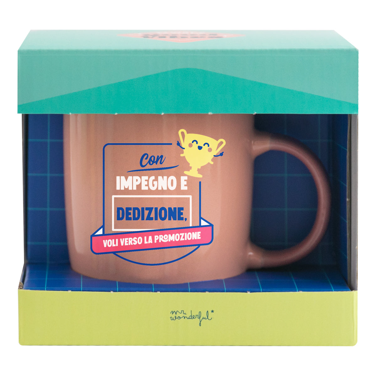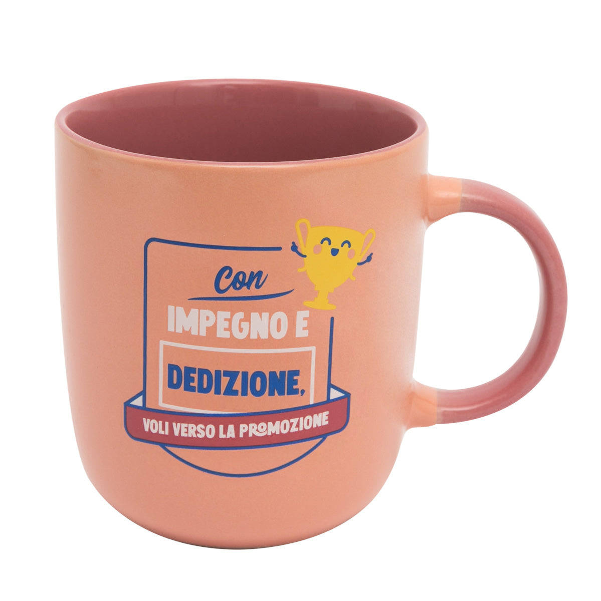 Tazza in ceramica con messaggio per studenti. Il colore della parte esterna è diverso da quello della parte interna e dal manico della tazza, per un tocco di originalità.