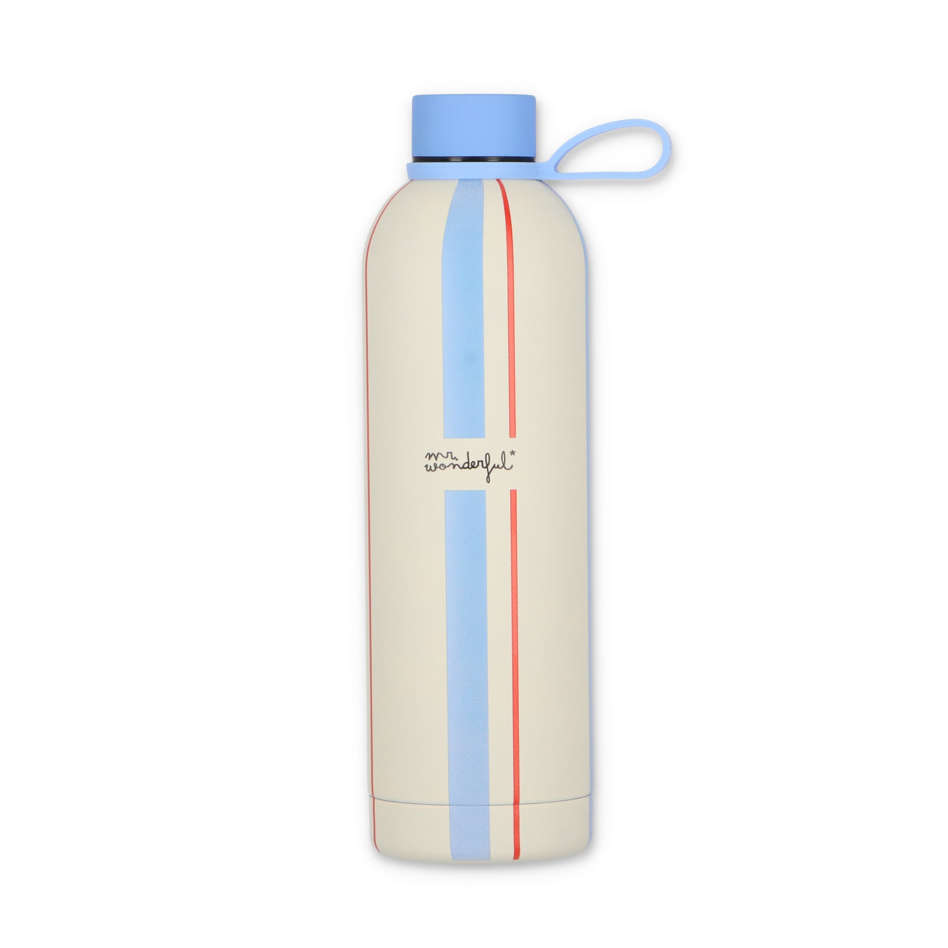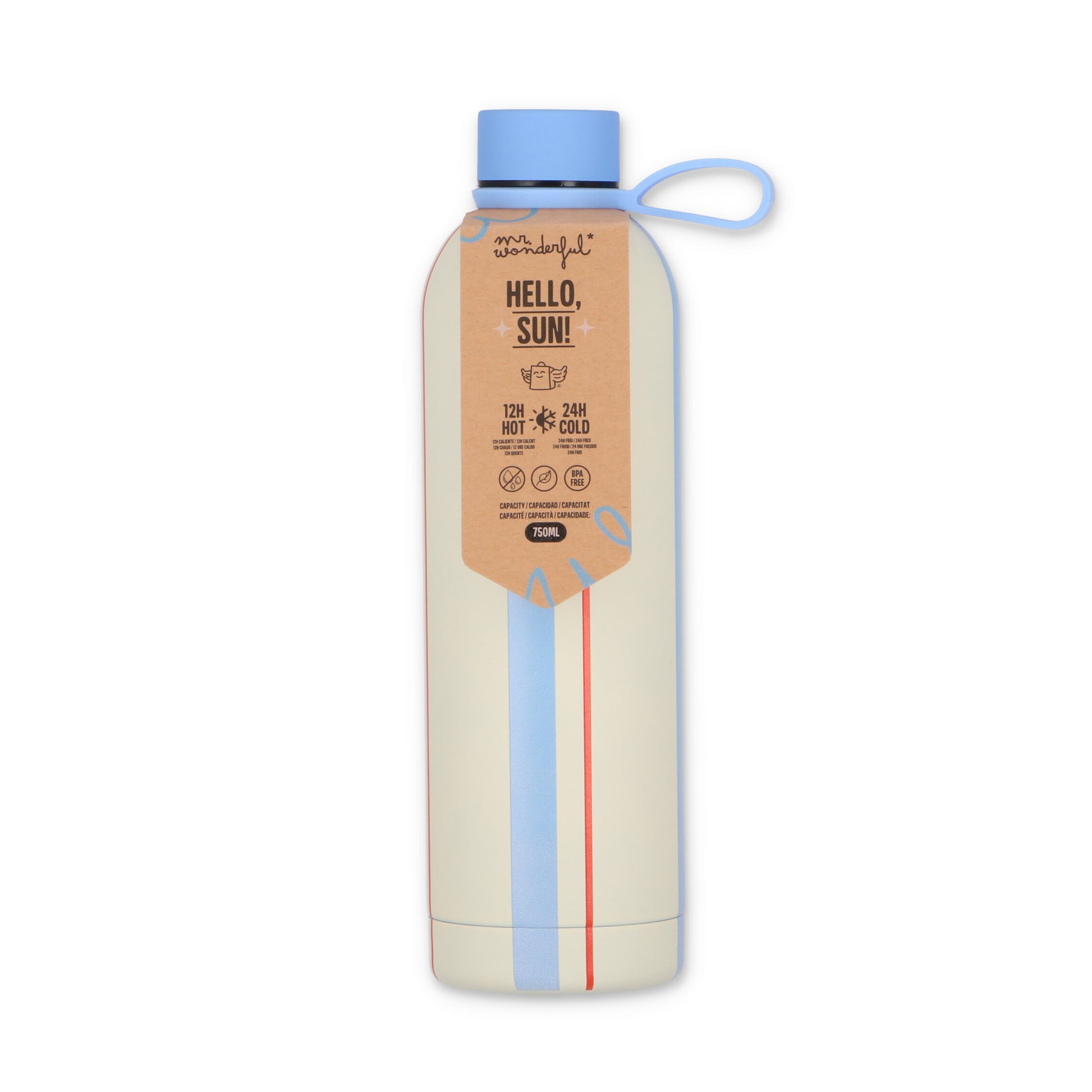 Botella térmica realizada en acero inoxidable 304 de doble capa, aguanta las bebidas frías hasta un máximo de 24 horas y calientes hasta 12 horas. Con cierre hermético, inodora y ligera. Libre de BPA.