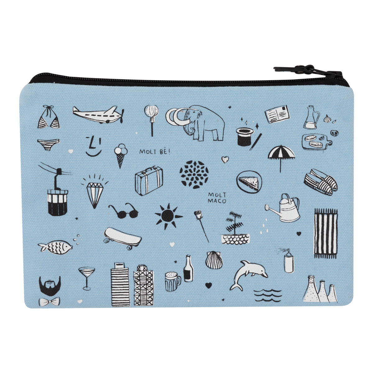 Neceser portatodo realizado en algodón, decorado con un diseño sobre la ciudad de Barcelona. Con cierre de cremallera.