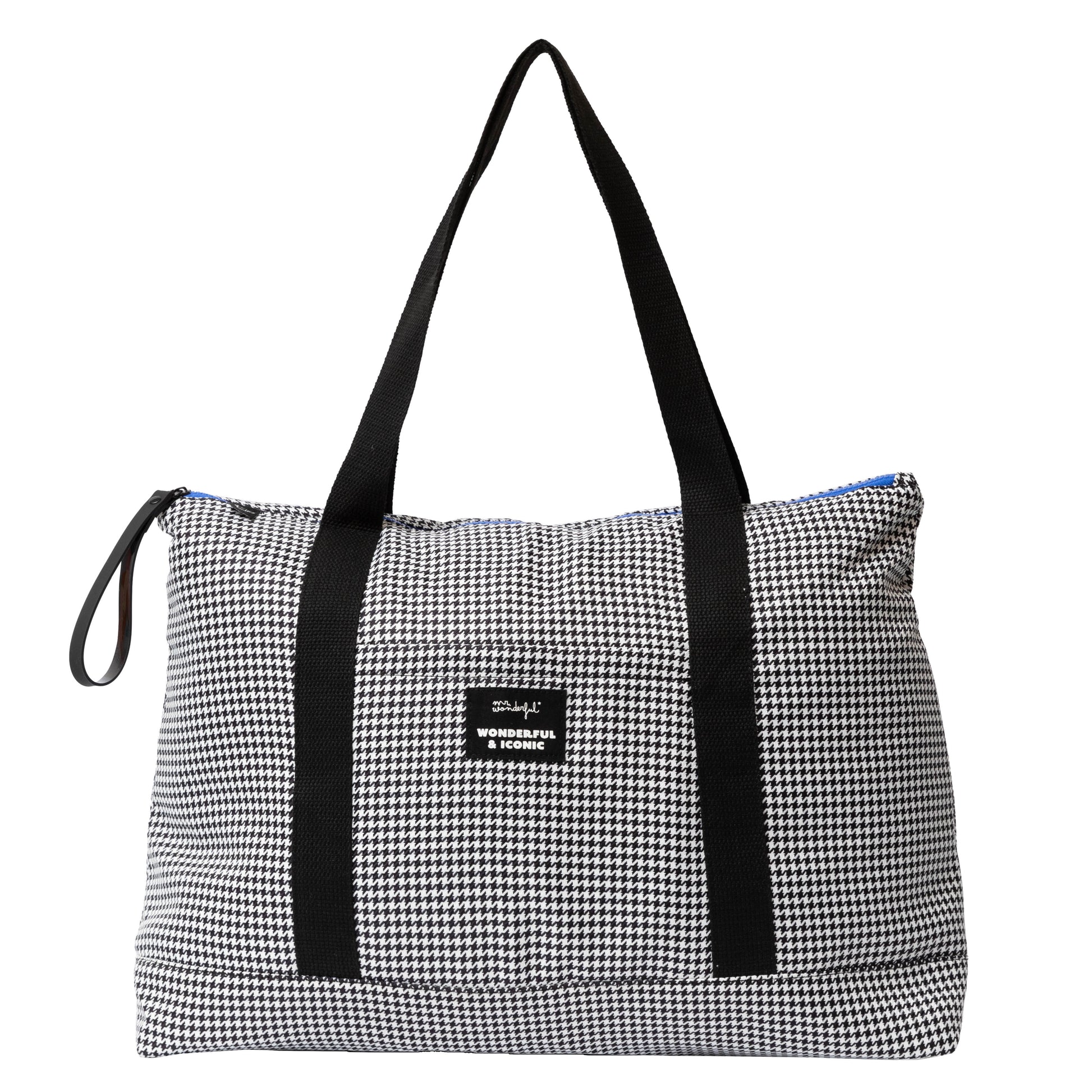 Bolsa estilo tote bag de gran tamaño, realizada en poliéster y con estampado de pata de gallo, con cierre de cremallera.