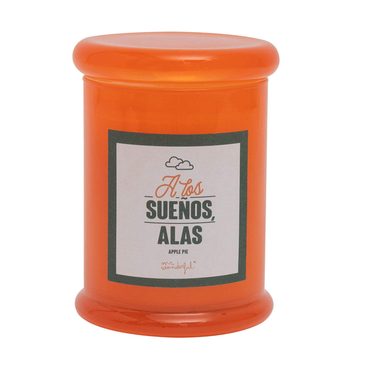 Vela aromática fabricada en cera vegetal. El recipiente es de vidrio e incluye tapa, también de vidrio. El mensaje se presenta en una etiqueta de papel con textura, que le da un aire muy cualitativo. Aroma: Apple pie.