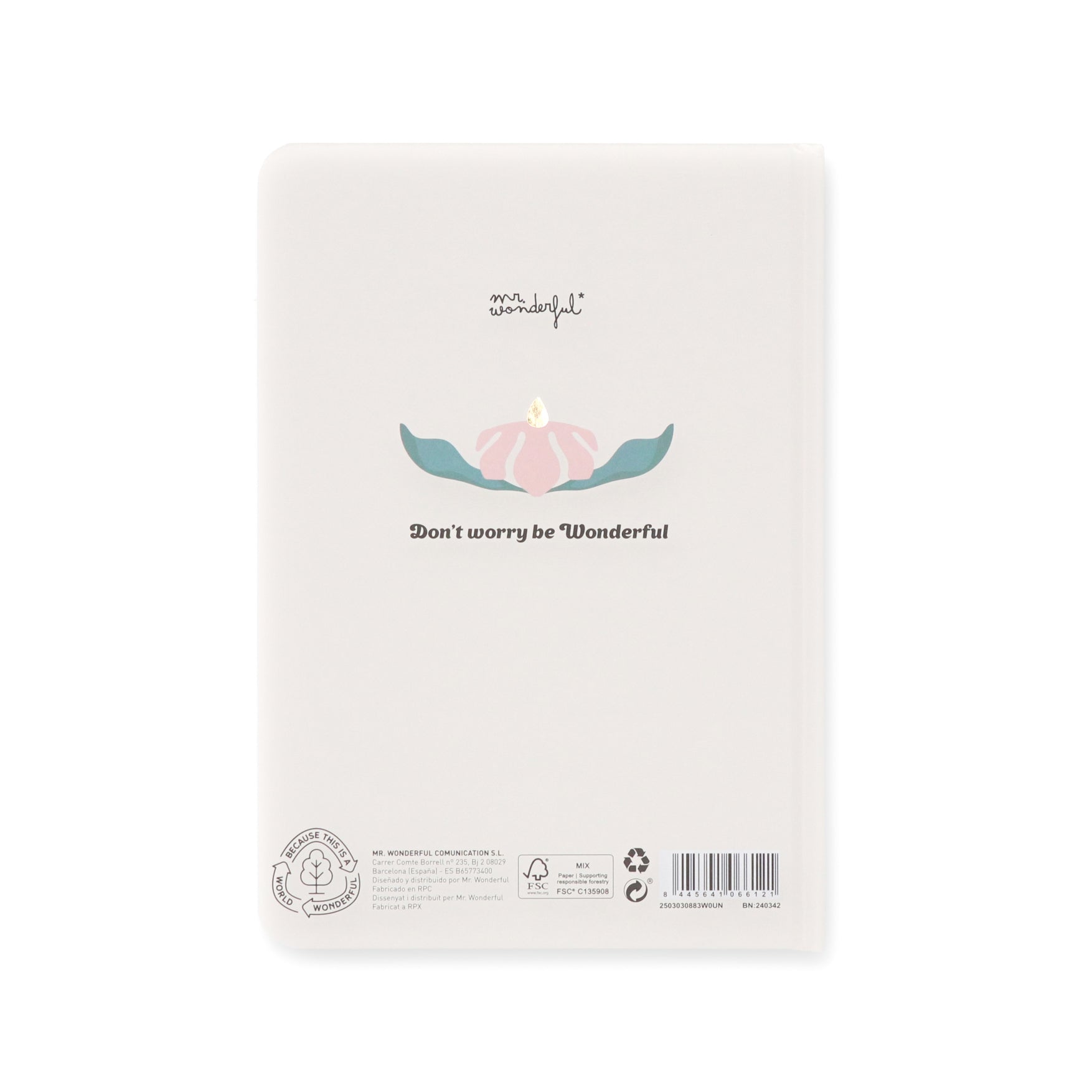 Libreta de tamaño A5 con encuadernación cosida con apertura de 180º. Contiene 160 páginas de 90gsm.