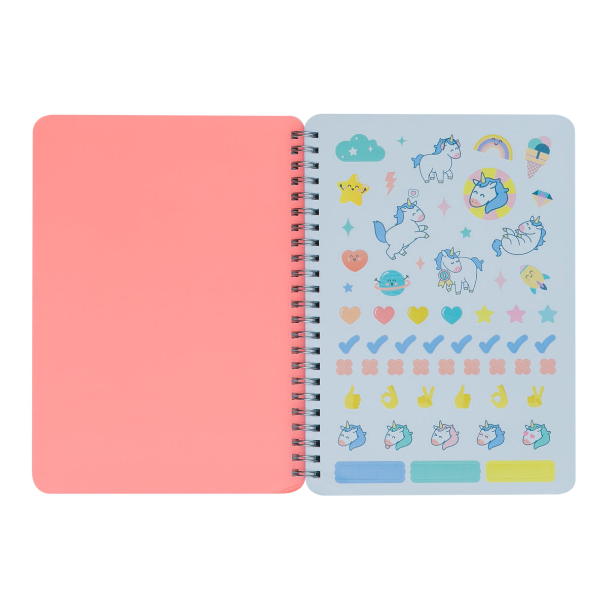 Carnet de format A5 avec reliure spirale, couverture rigide et 160 pages de papier 80 g/m². avec la certification FSC, qui garantit qu'il provient de forêts gérées de manière responsable. Comprend une feuille d'autocollants.
