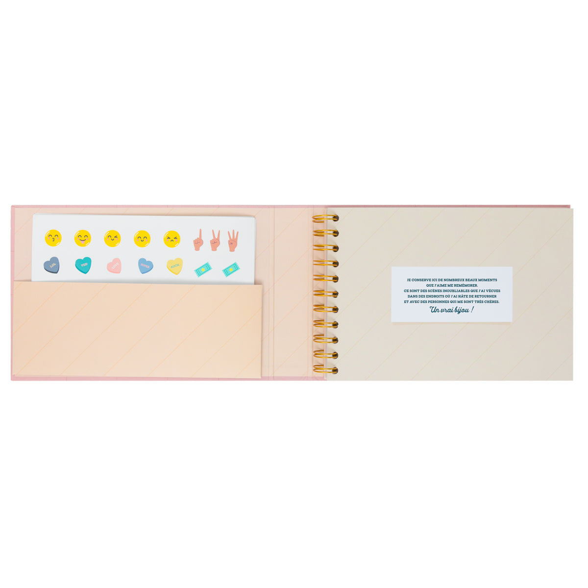Album à remplir de bons souvenirs. Il comprend 64 pages pour rassembler ces plus beaux moments, ainsi que 8 feuilles d'autocollants thématiques. Il possède la certification FSC, qui garantit que sa fabrication est réalisée avec du papier issu de forêts écologiquement responsables.