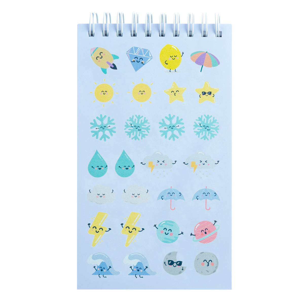 Livre avec enchaînement en spirale, contenant plus de 1000 autocollants à l'intérieur, certains avec des finitions spéciales. Il possède la certification FSC, qui garantit qu'il a été fabriqué avec du papier issu de forêts gérées de manière responsable.