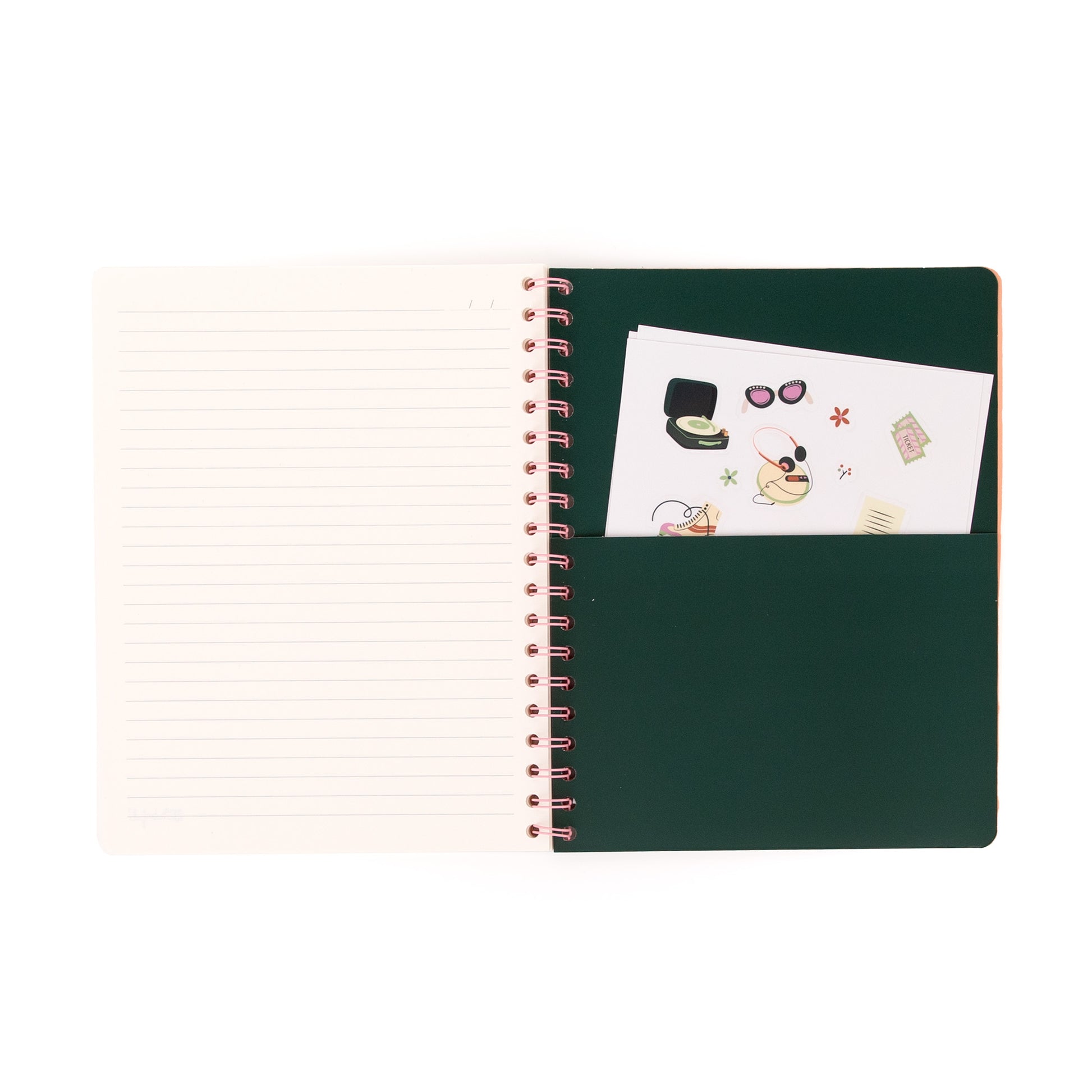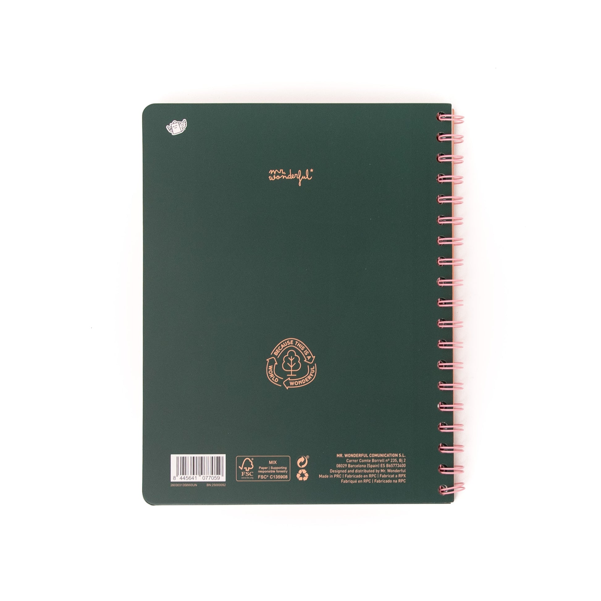 Cahier au format A5 avec reliure spirale et couverture rigide. 160 pages lignées de 90gsm, certifiées FSC, garantissant que le papier provient de forêts gérées de manière responsable.