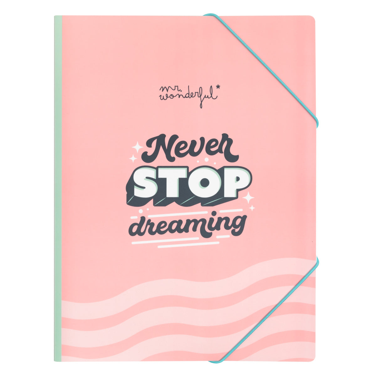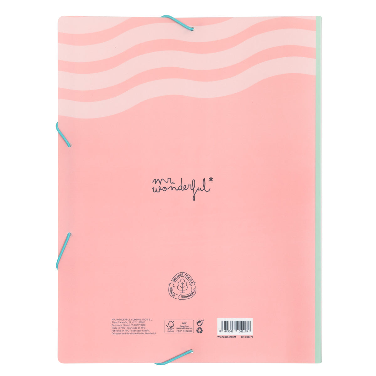 Dossier avec bandes élastiques pour la fermeture. Il dispose de 30 pochettes en plastique transparentes à l'intérieur, pour ranger et classer tous types de documents ou notes de cours.