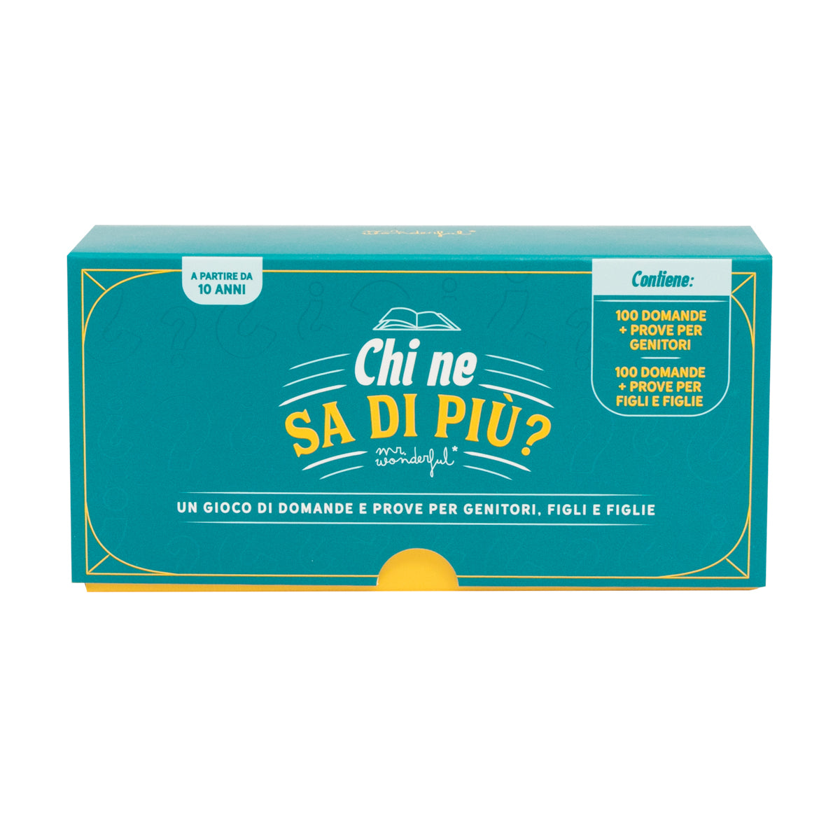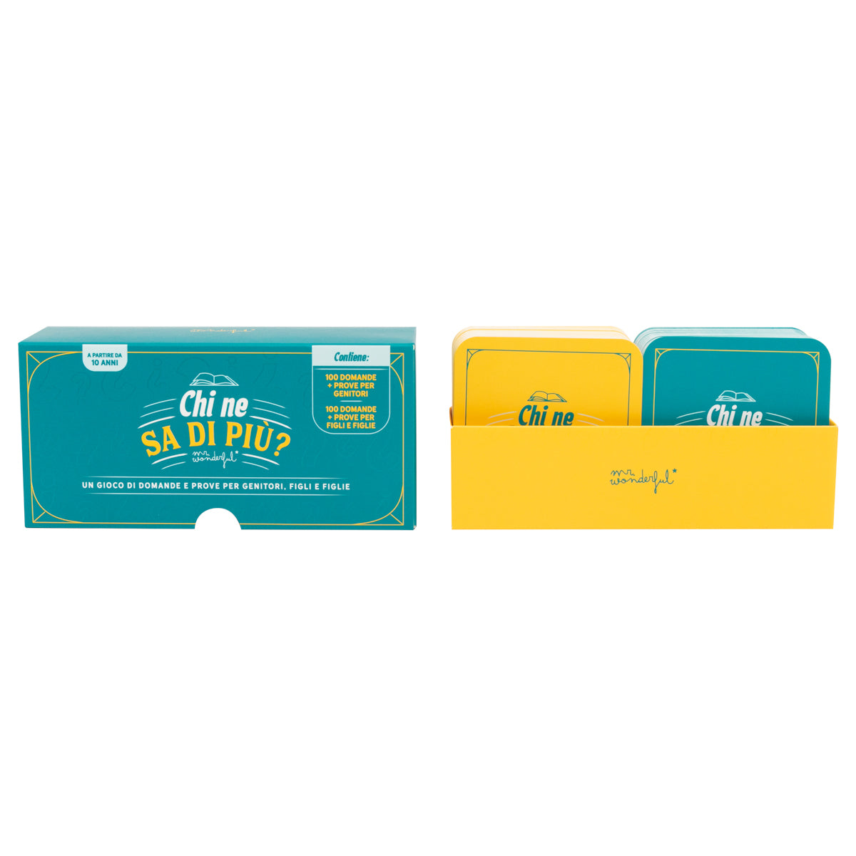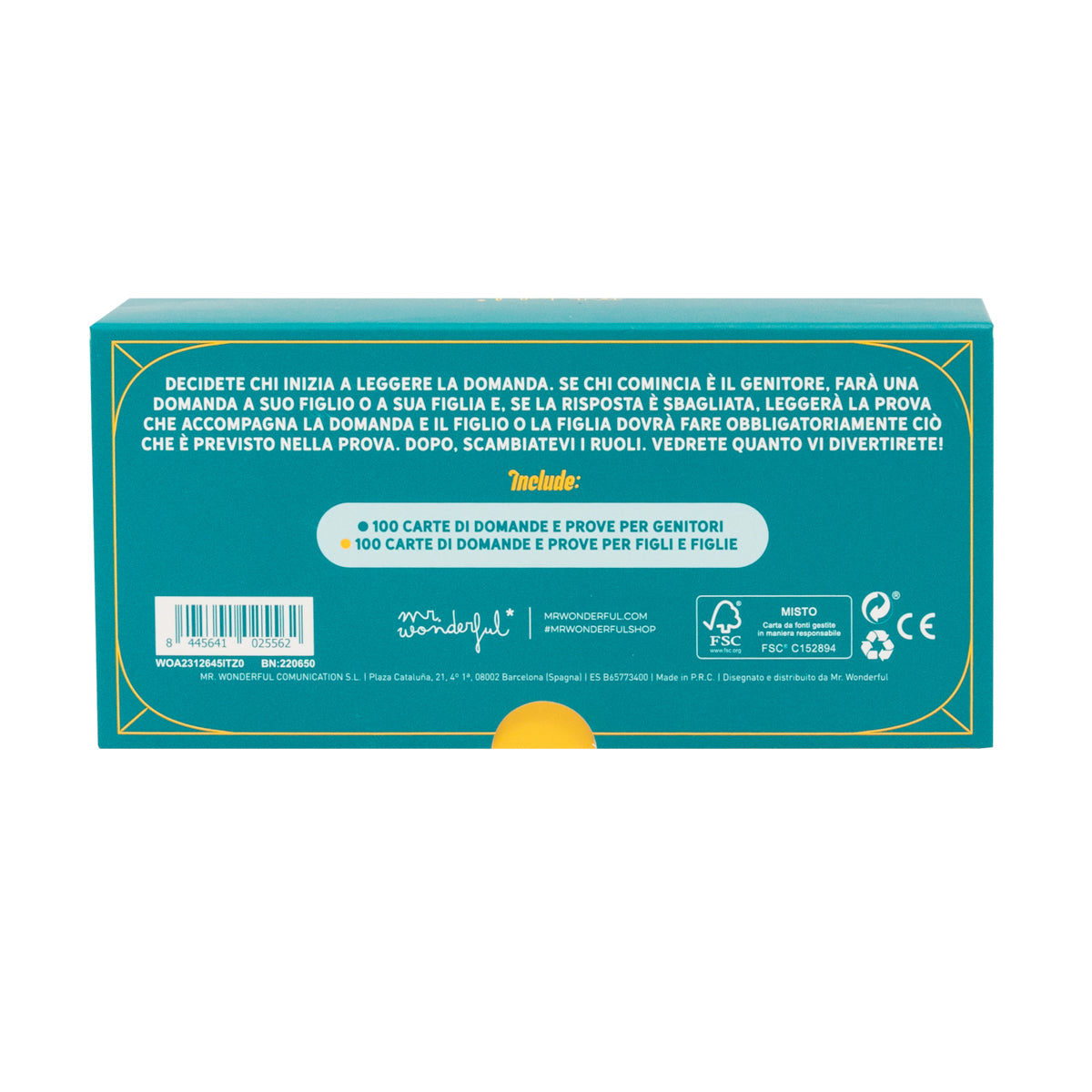 Jeu de carte pensé pour jouer à Padri e/o Madri avec plus de piccolis, à part dai 10 anni. Le jeu contient 200 cartes : 100 cartes pour les personnages des gens et 100 pour les personnages des gens (dans le cas où vous en avez besoin, une affirmation du souvenir de Douvres ou la confirmation est vraie ou fausse). En cas d'erreur, votre autre lettre indique une preuve de réussite.