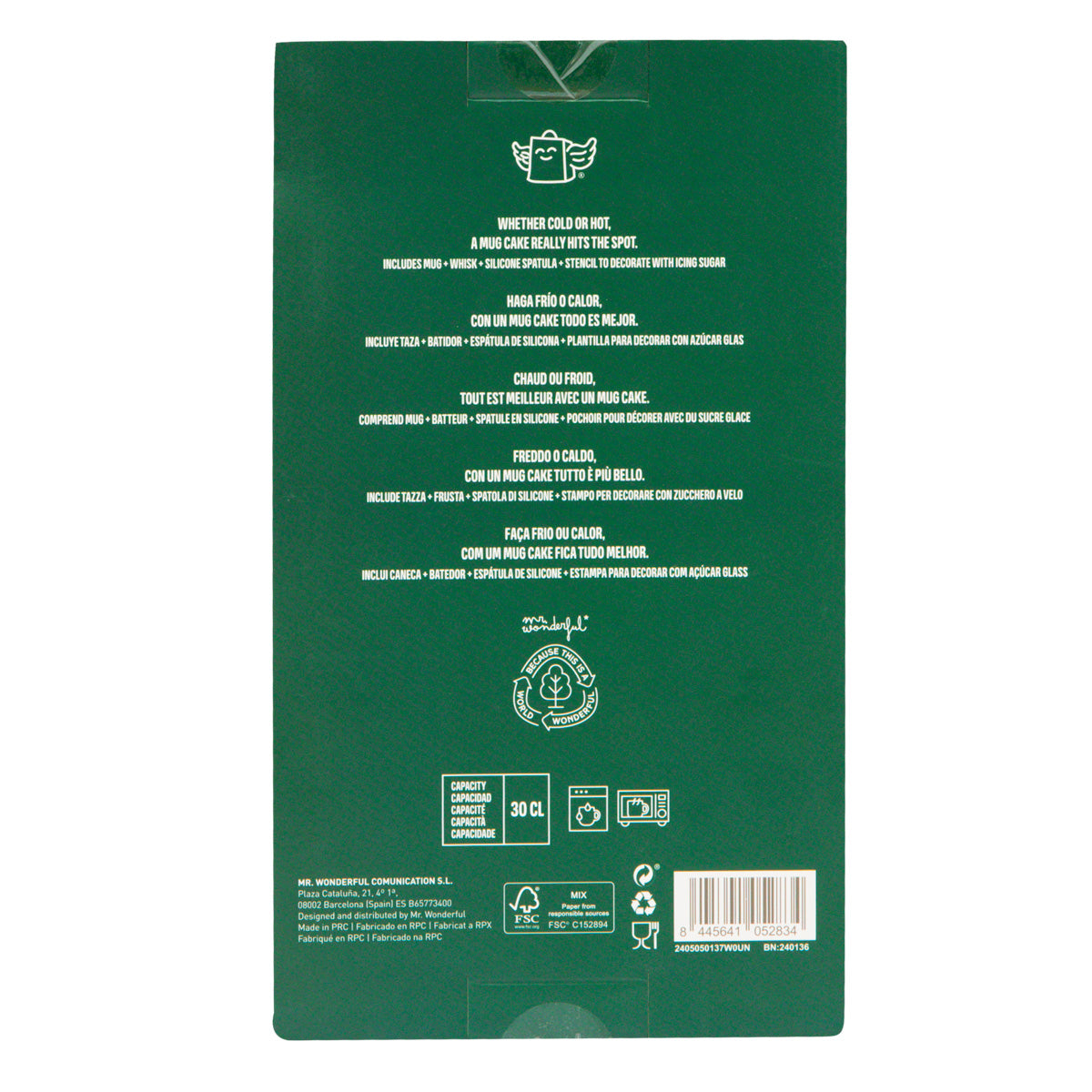 Coffret cadeau composé d'un mug en céramique, d'un fouet, d'une spatule en silicone et d'un pochoir pour décorer avec du sucre glace. La tasse comprend un message de Noël amusant.