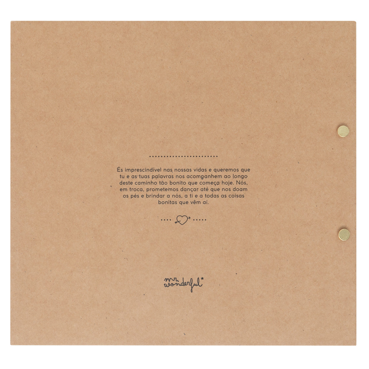 Livre de missions de mariage avec un message de célébration dans sa couche et avec 64 pages avec des espaces différents pour que les invités puissent se souvenir de votre dévouement. Possui ou certificat FSC, qui garantit qu'il a été fabriqué avec du papier issu de forêts gérées de manière responsable.