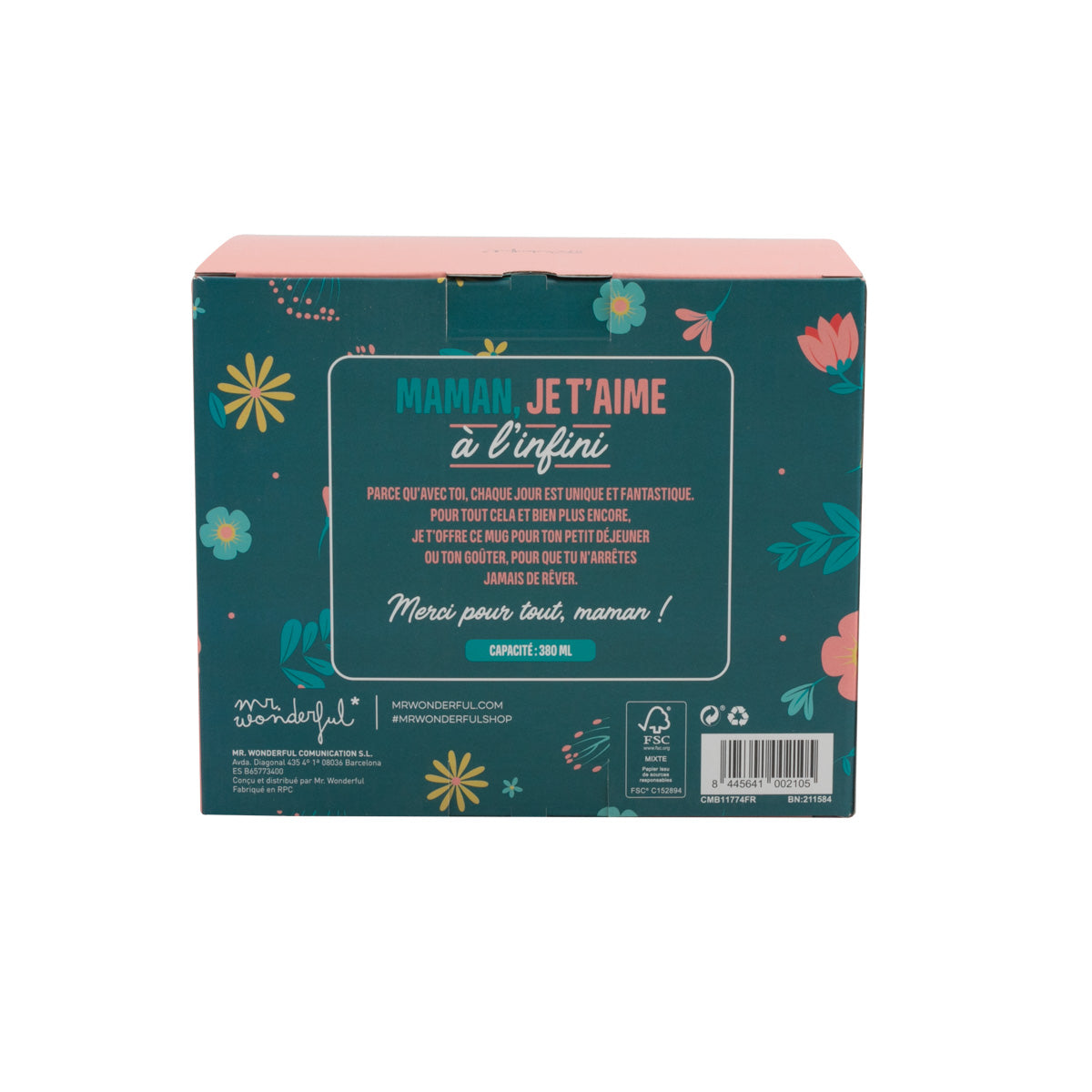 Il y a mille façons de faire des compliments à ta maman. Mais ce fantastique mug Mr. Wonderful est tellement génial qu'il pourrait reporter le premier prix à n'importe quel concours, pas seulement pour son super message, mais aussi pour ce design que celle qui t'a donné la vie adora. De plus, c'est un distributeur pratique que vous versez dans votre micro-ondes et dans votre lave-vaisselle. Vous verrez comment vous voulez qu'il soit content de l'utilisateur, c'est sans danger pour lui. Tu adores lui donner des raisons de sourire, pas vrai ? Que lui dirait-tu, là, tout de suite si elle était en face de toi ? Nous sommes sûrs que vous lui répéterez le magnifique message de ce mug. Il est plus qu'évident que c'est elle la meilleure à tes yeux, mais nous avons pensé que tu aimerais ajouter un beau message avec tes propres mots. C'est pour cela que nous t'avons réservé un espace sur le packaging de ce mug, pour que tu lui écrives une dédicace spéciale. Cette surprise sera la plus excitante ! Elle adorera la façon dont vos auras lumineuses sont écrites. Tu es sur le point de faire très plaisir à ta maman !
