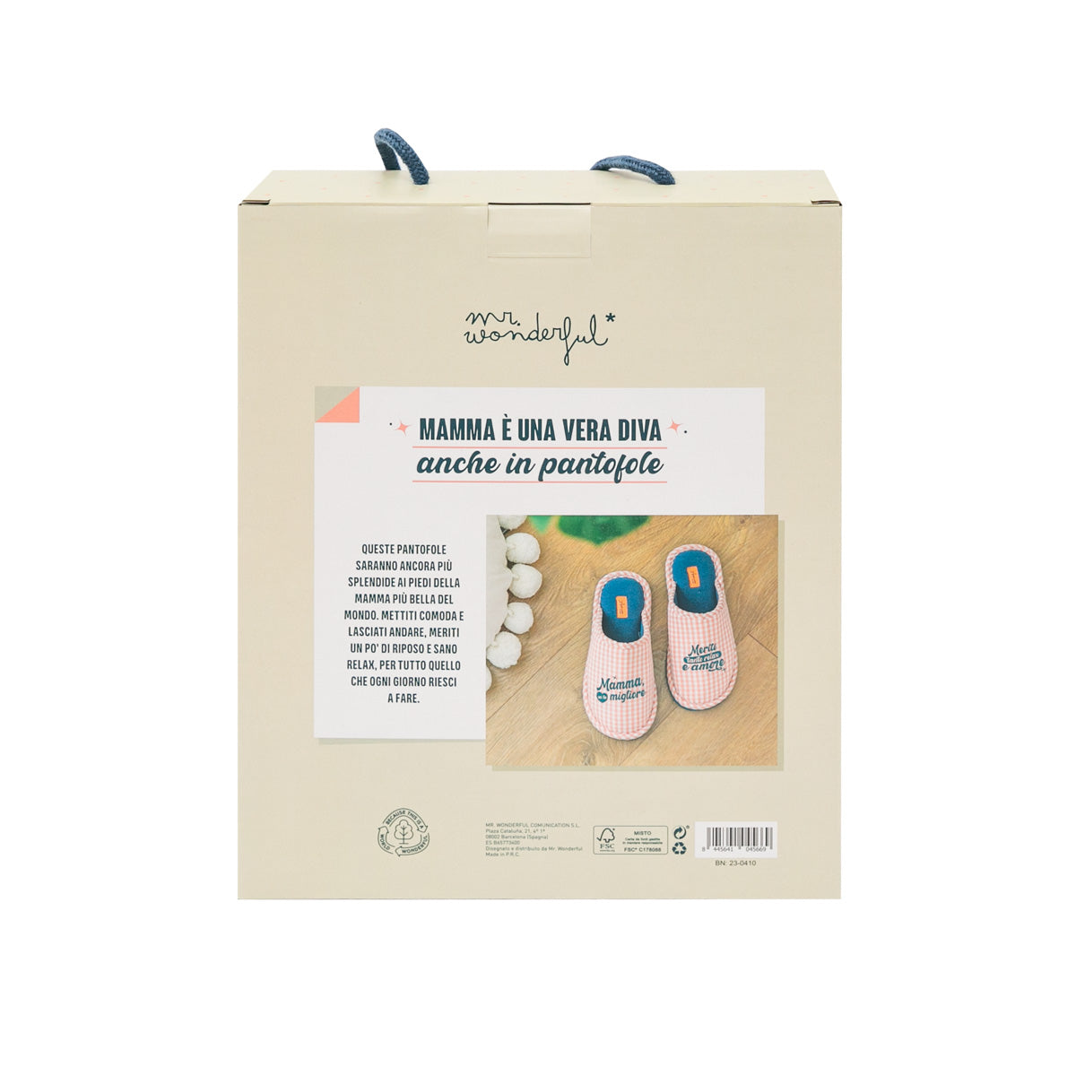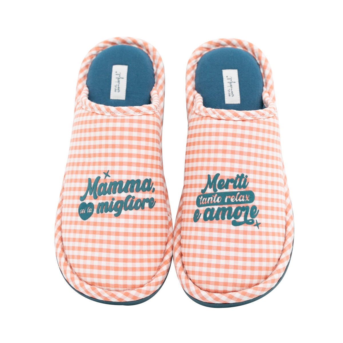 Pantofole avec phrase dédiée à toutes les mamans. L'expression, en italien, est emblématique du due pantofole. Disponible en taglie dû : 36-38 et 39-41. Elles sont fabriquées en polyester et coton et la semelle est en PVC, antidérapante.