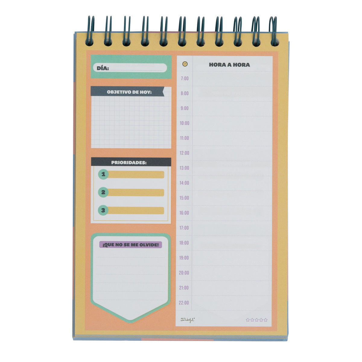 Agenda journalier au format vertical et avec reliure spirale, le rendant très confortable à utiliser. Ses pages présentent un contenu semi-planifié, vous permettant d'écrire votre objectif principal de la journée, d'autres priorités et des choses importantes. Il dispose également d'un espace horaire pour être plus précis dans le détail des tâches. Il compte 160 pages et a été fabriqué avec du papier de