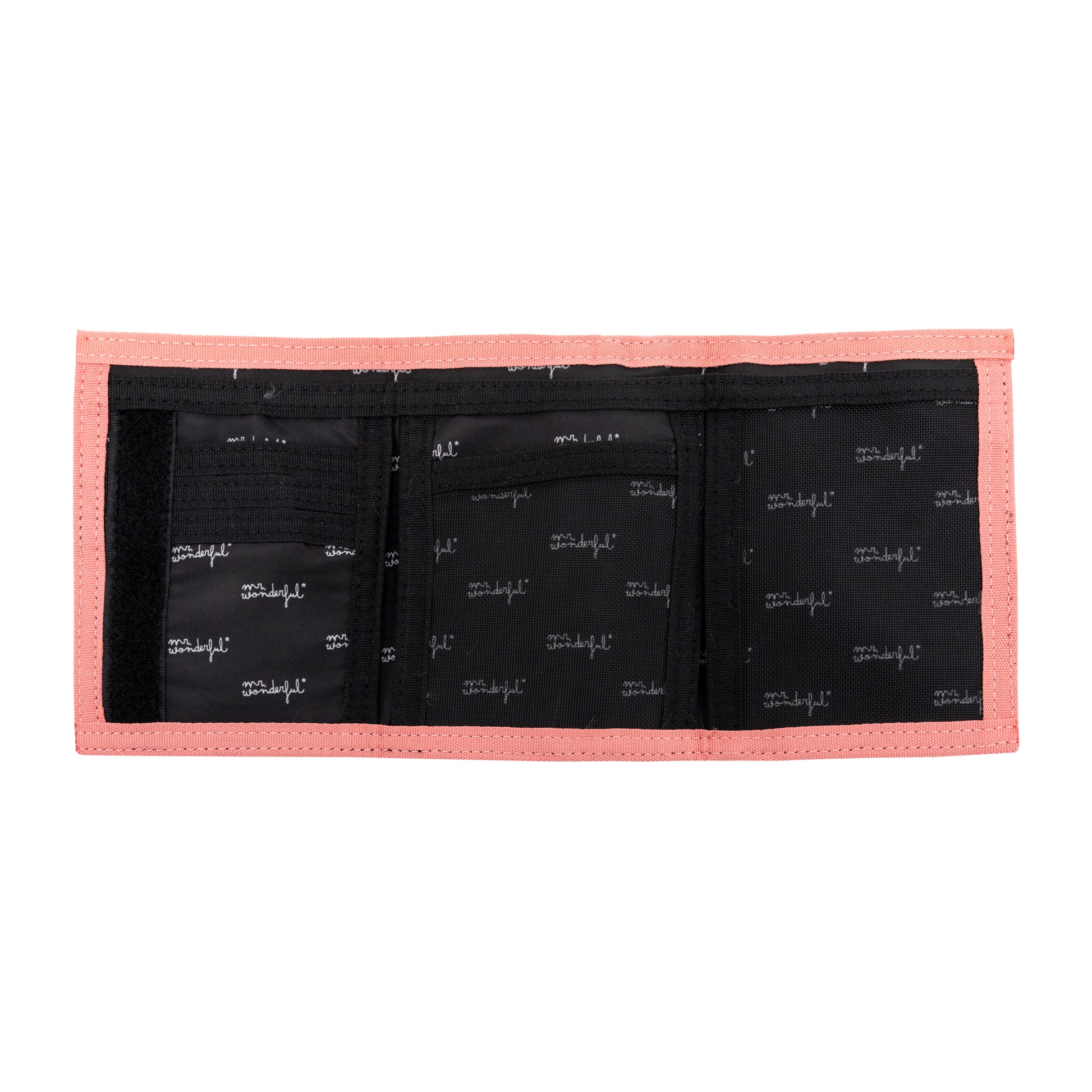 Portefeuille fabriqué en rPET, un matériau 100% recyclable obtenu à partir de bouteilles en plastique recyclées. Doté d'une fermeture zippée, la tirette est en forme de marguerite Mr. Wonderful, ce qui lui confère de l'originalité. Avec plusieurs compartiments intérieurs, dont un spécifiquement destiné au rangement des pièces de monnaie.