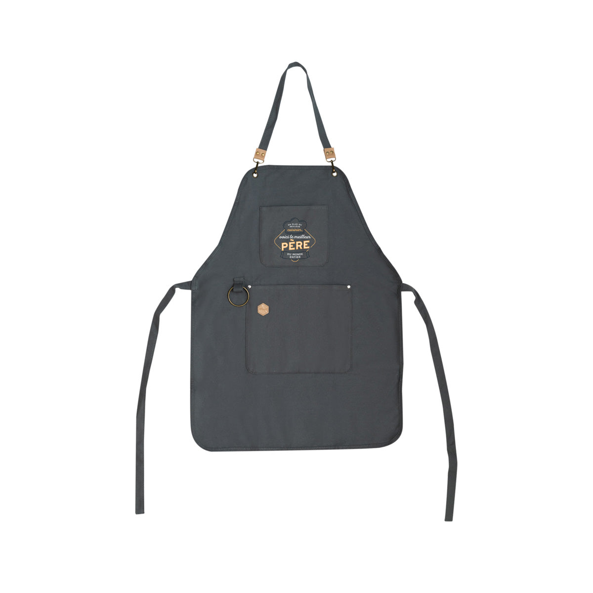 - Ensemble tablier + torchon, tous deux en coton et avec les messages adressés aux pères.