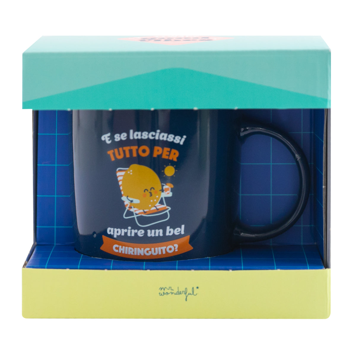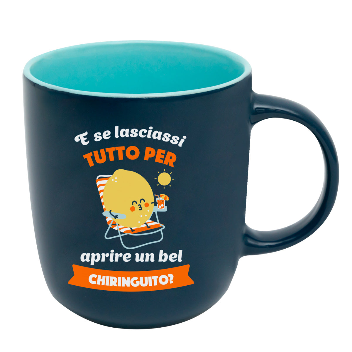 Tasse en céramique avec un message amusant. La couleur de la partie interne est différente de celle de la partie externe, avec une touche d'originalité.