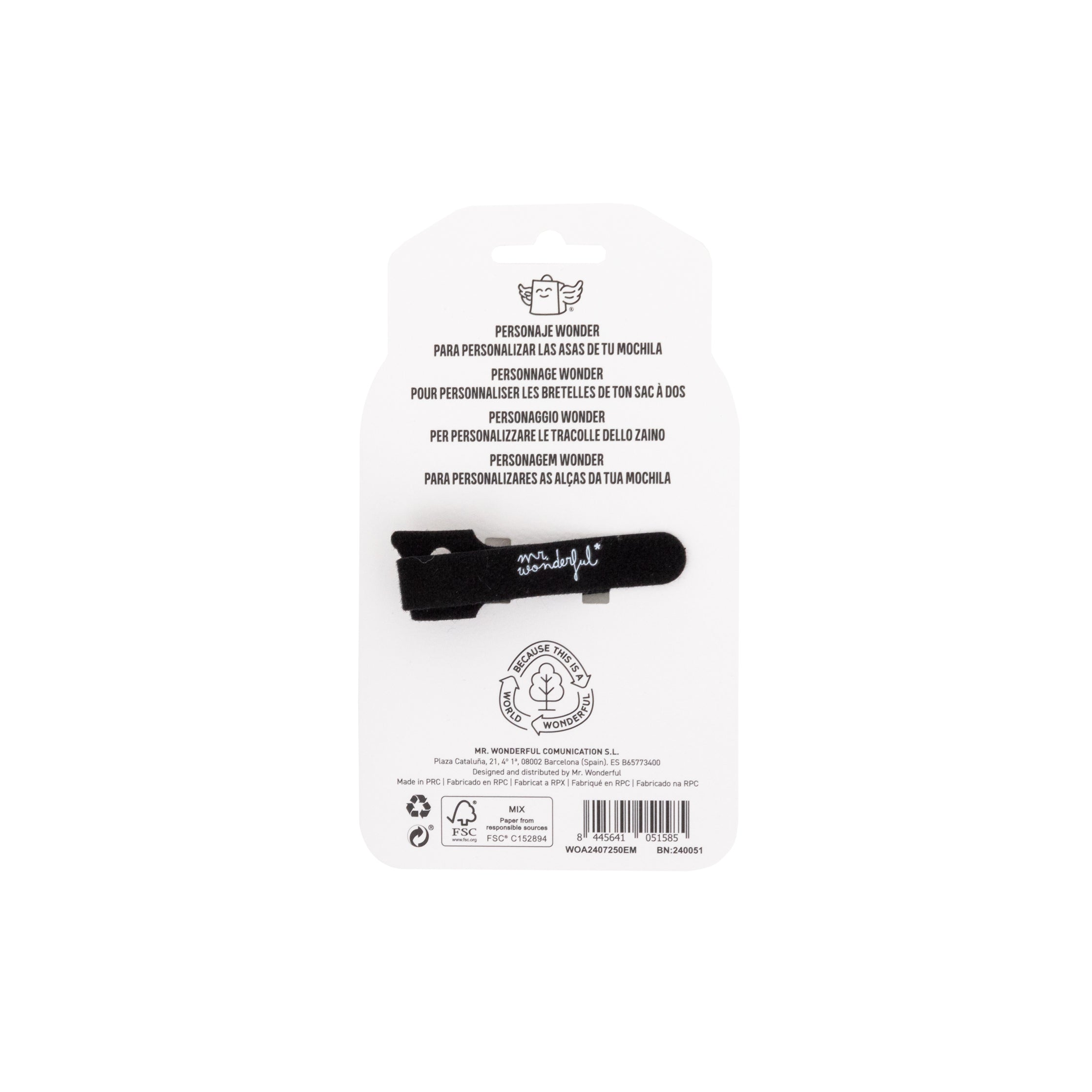 Personnage Mr. Wonderful avec fermeture velcro au dos, idéal pour personnaliser les anses des sacs à dos ou des sacs.
