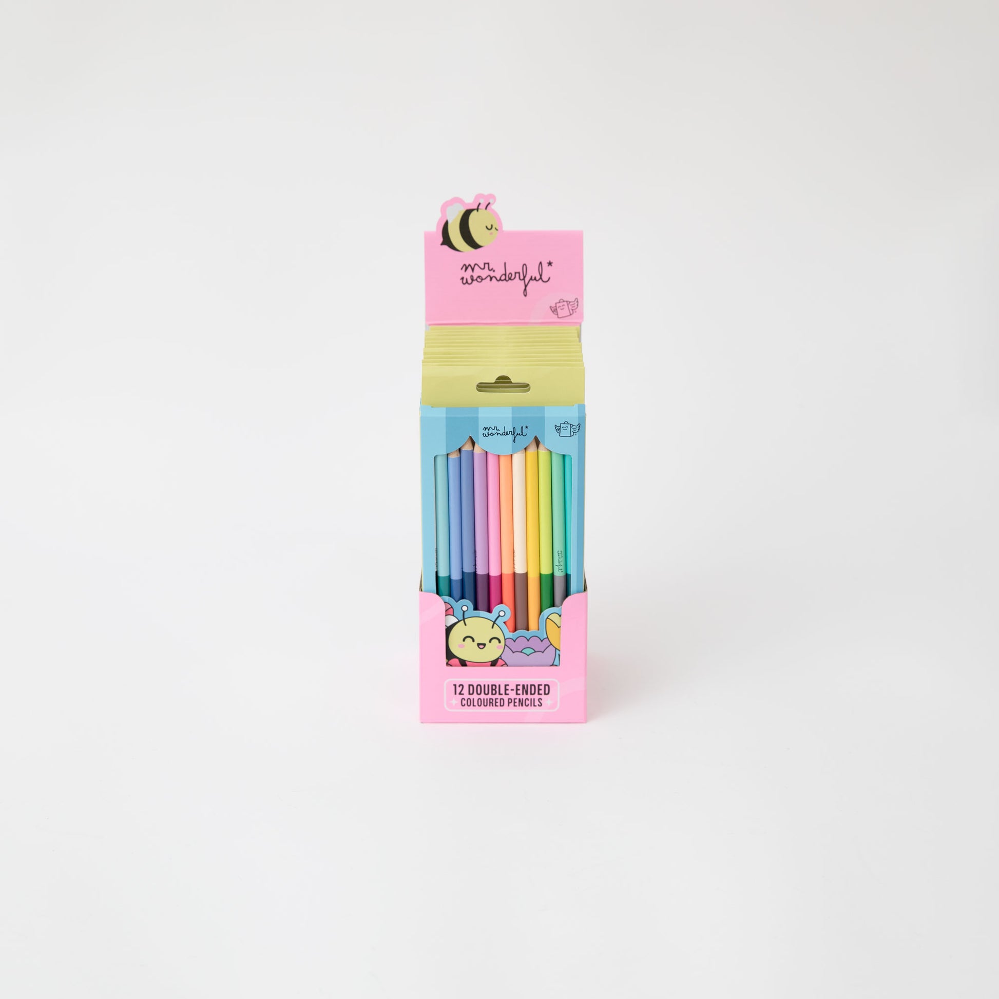 Colorare non è mai stato così divertente! Questo set di matite colorate a doppia punta di Mr. Wonderful è perfetto per liberare la tua creatività con il doppio delle possibilità in ogni matita. Con colori vibranti ad entrambe le estremità, ti divertirai il triplo occupando metà spazio nella tua astuccio.